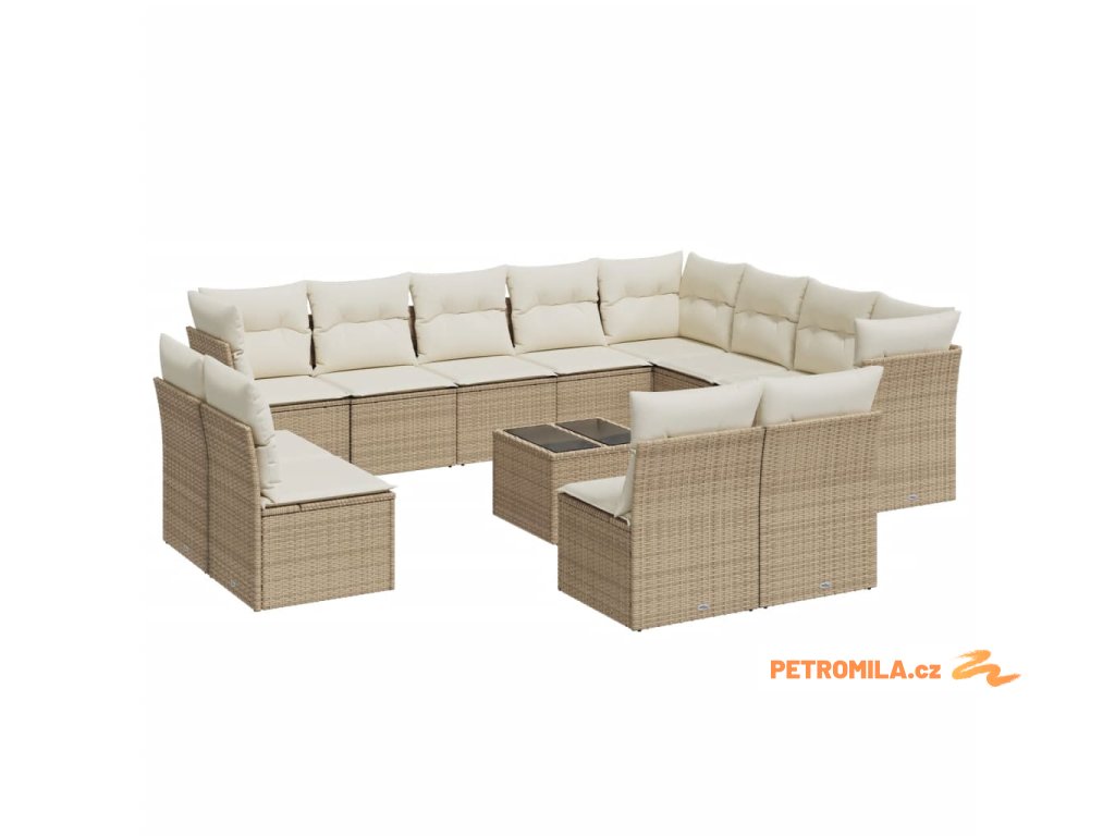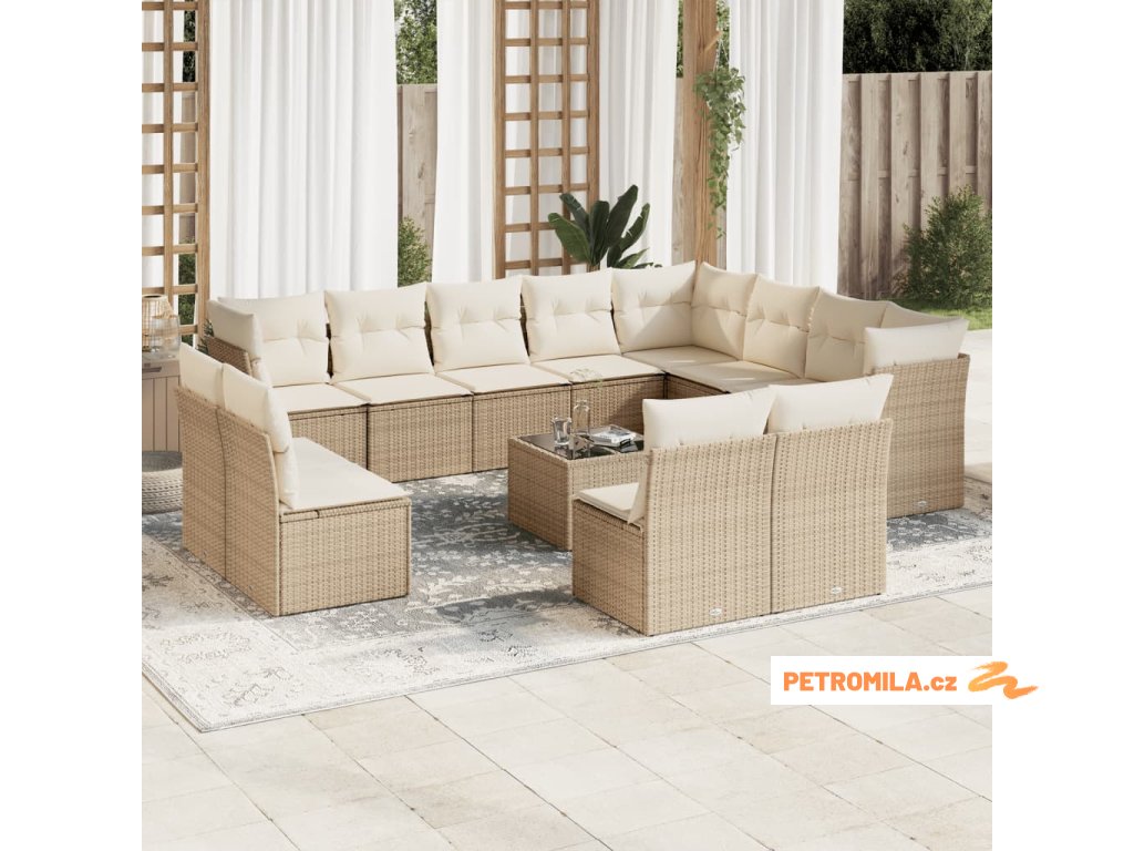 13dílná zahradní sedací souprava s poduškami béžová polyratan