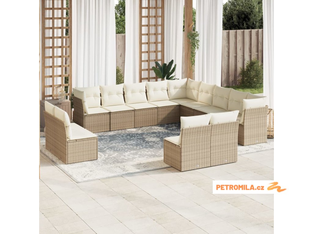 13dílná zahradní sedací souprava s poduškami béžová polyratan