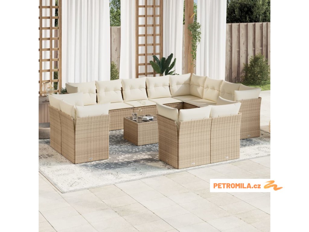 13dílná zahradní sedací souprava s poduškami béžová polyratan