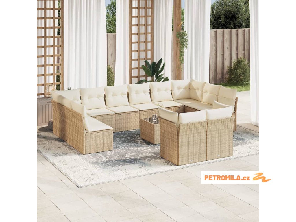 13dílná zahradní sedací souprava s poduškami béžová polyratan