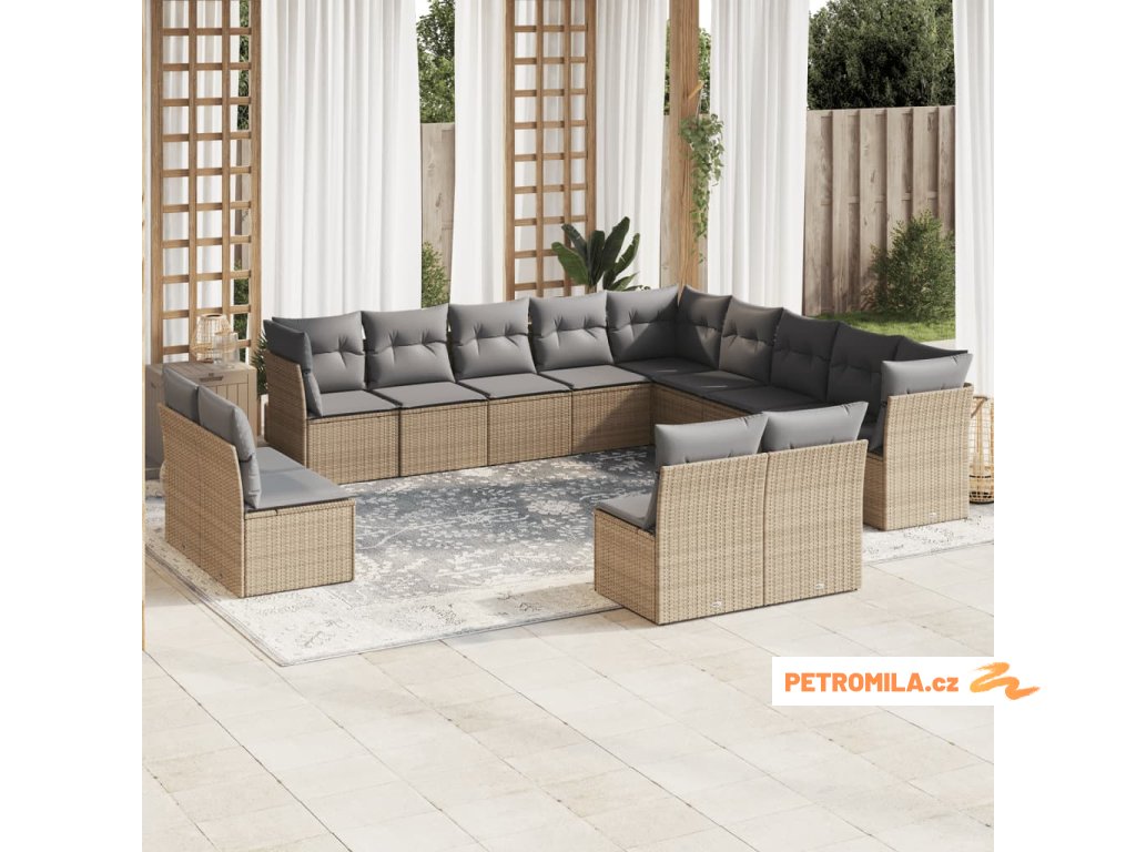 13dílná zahradní sedací souprava s poduškami béžová polyratan