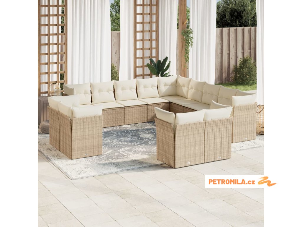 13dílná zahradní sedací souprava s poduškami béžová polyratan