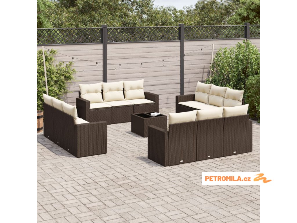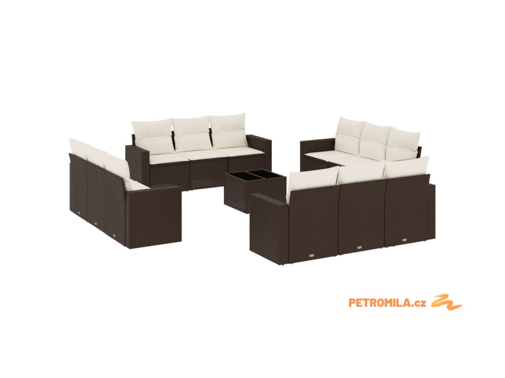 13dílná zahradní sedací souprava s poduškami hnědá polyratan