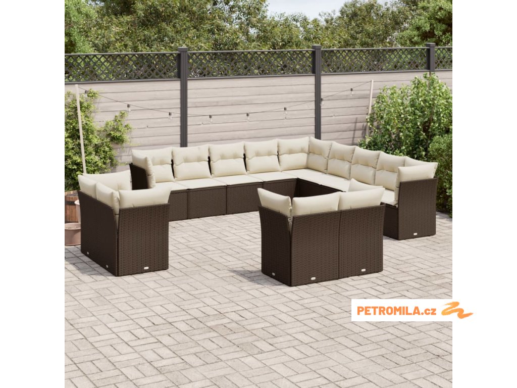 13dílná zahradní sedací souprava s poduškami hnědá polyratan