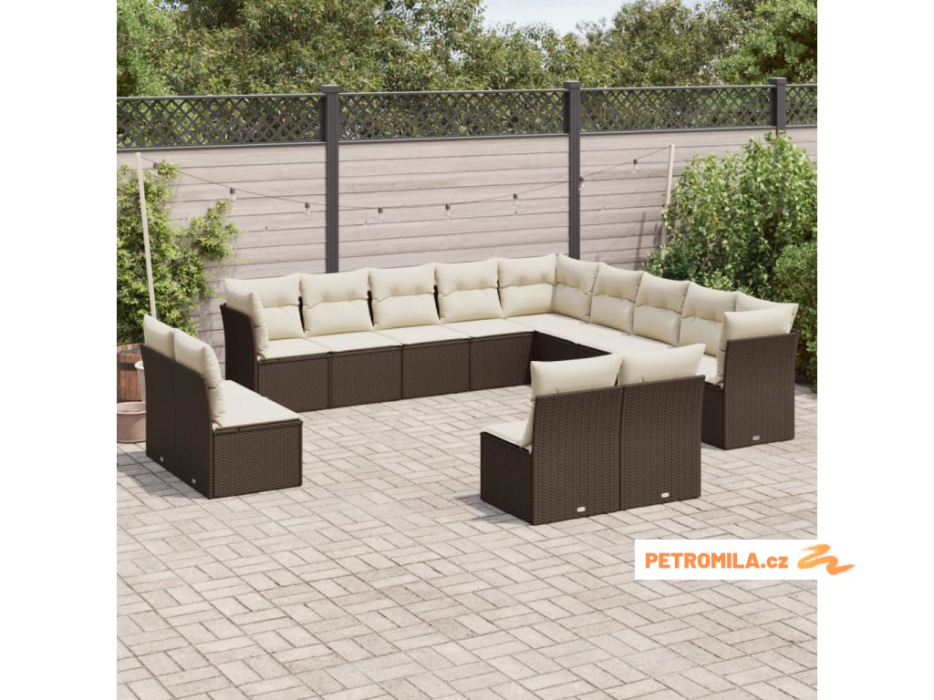13dílná zahradní sedací souprava s poduškami hnědá polyratan