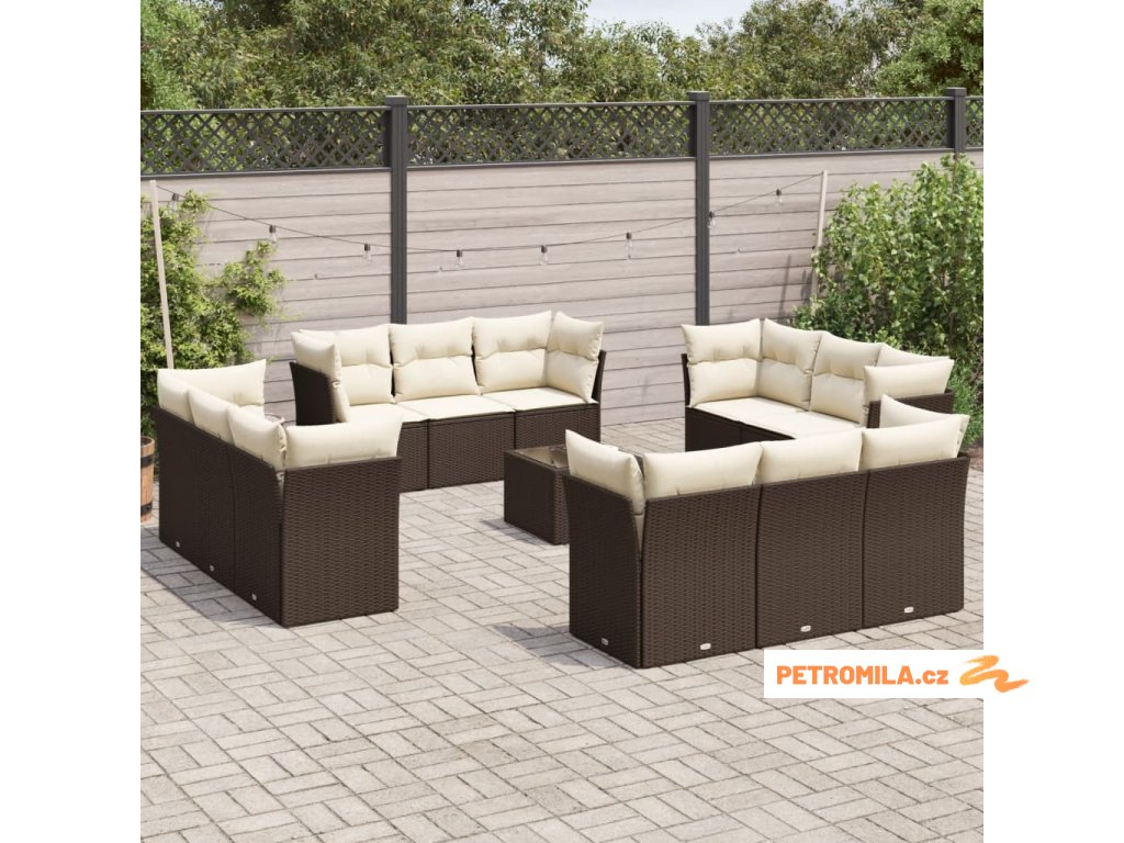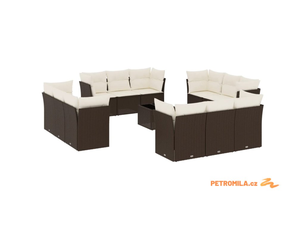 13dílná zahradní sedací souprava s poduškami hnědá polyratan