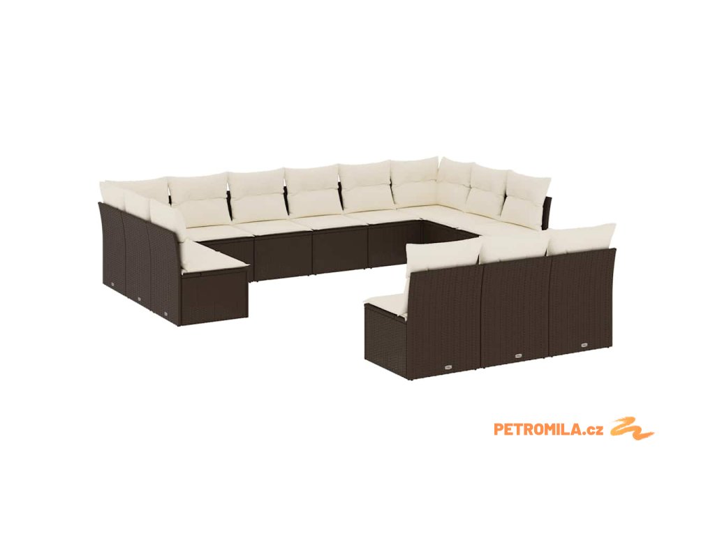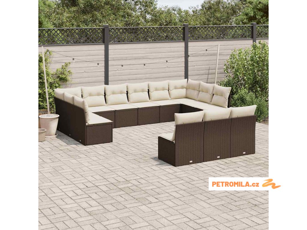 13dílná zahradní sedací souprava s poduškami hnědá polyratan