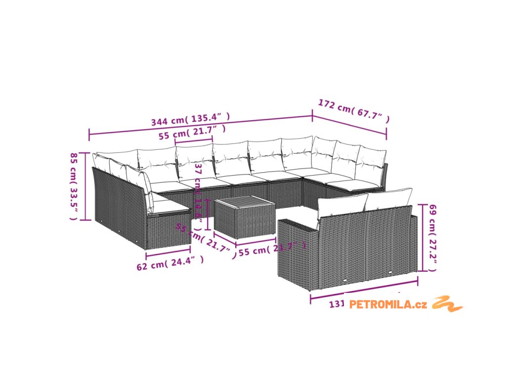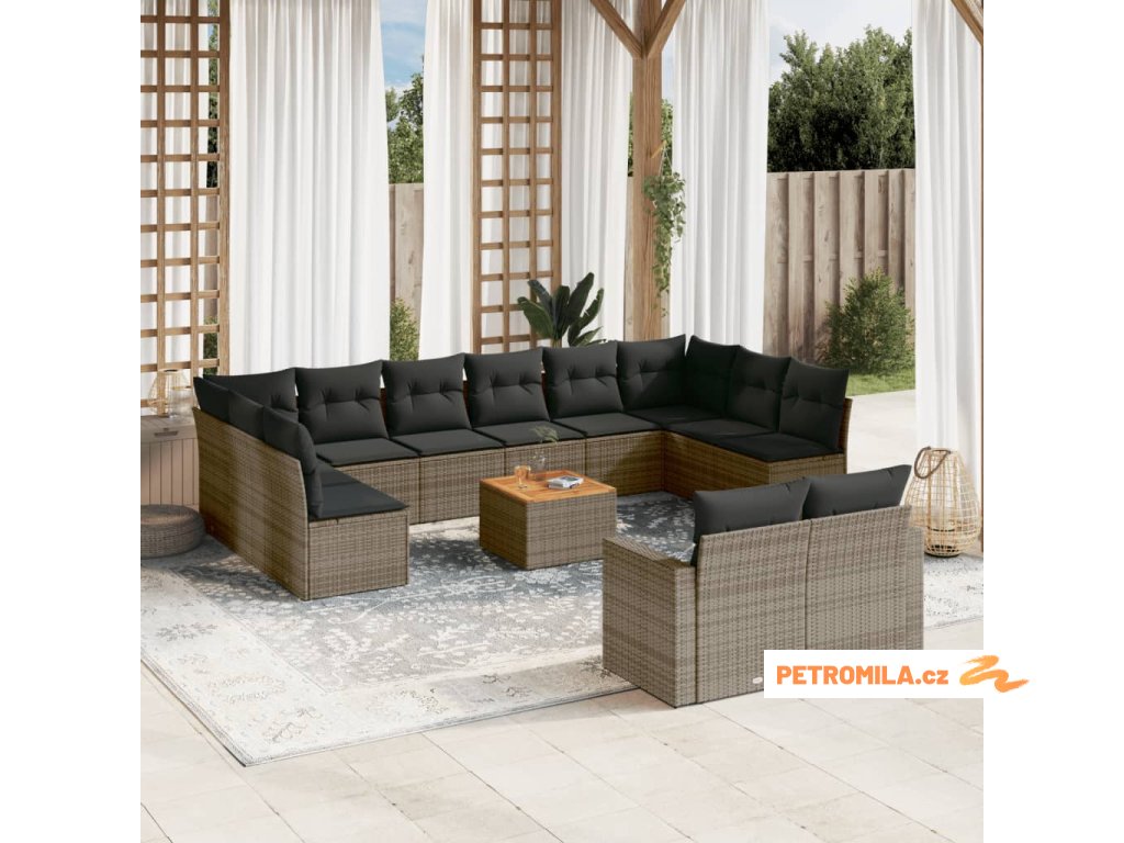 13dílná zahradní sedací souprava s poduškami šedá polyratan
