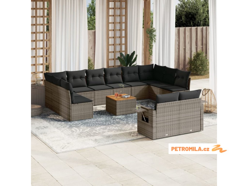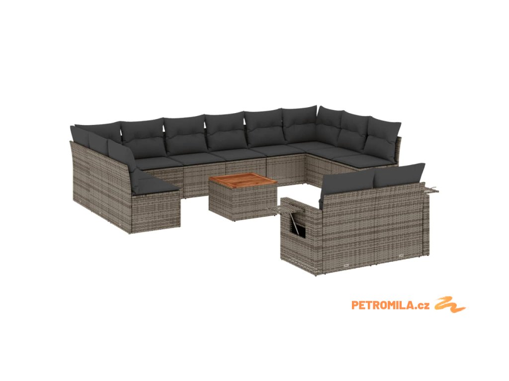 13dílná zahradní sedací souprava s poduškami šedá polyratan