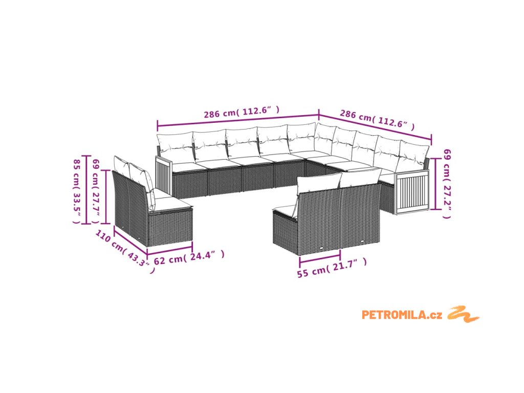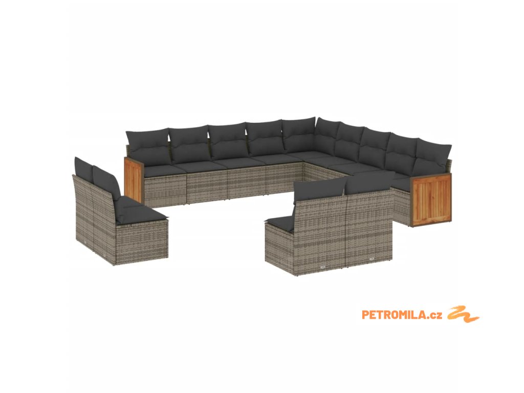 13dílná zahradní sedací souprava s poduškami šedá polyratan