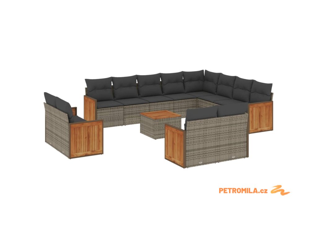 13dílná zahradní sedací souprava s poduškami šedá polyratan