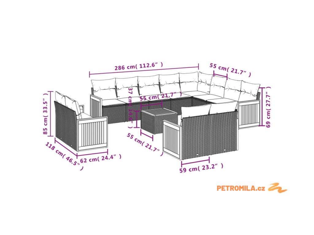 - Rozměry podušky za záda: 55 x 45 x 13 cm (D x Š x T)
