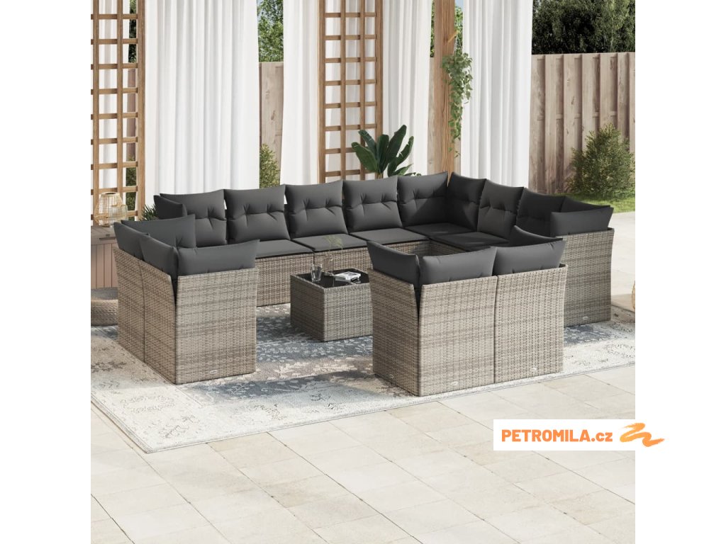 13dílná zahradní sedací souprava s poduškami šedá polyratan
