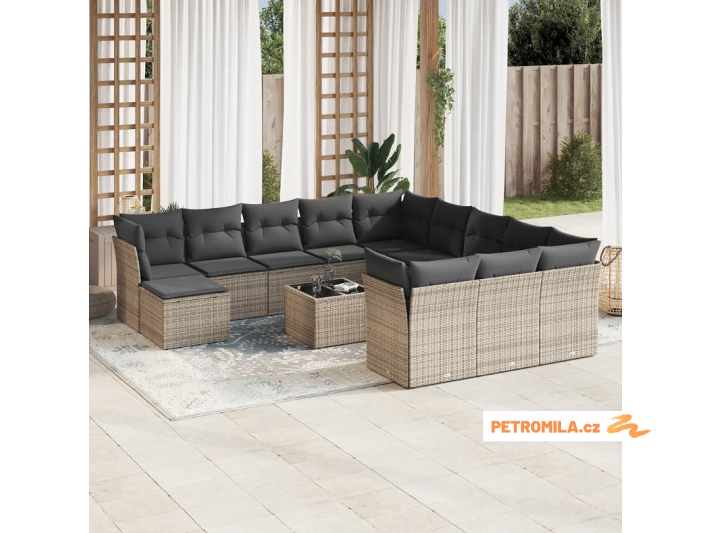 13dílná zahradní sedací souprava podušky světle šedá polyratan