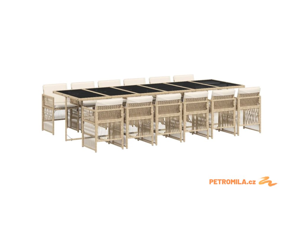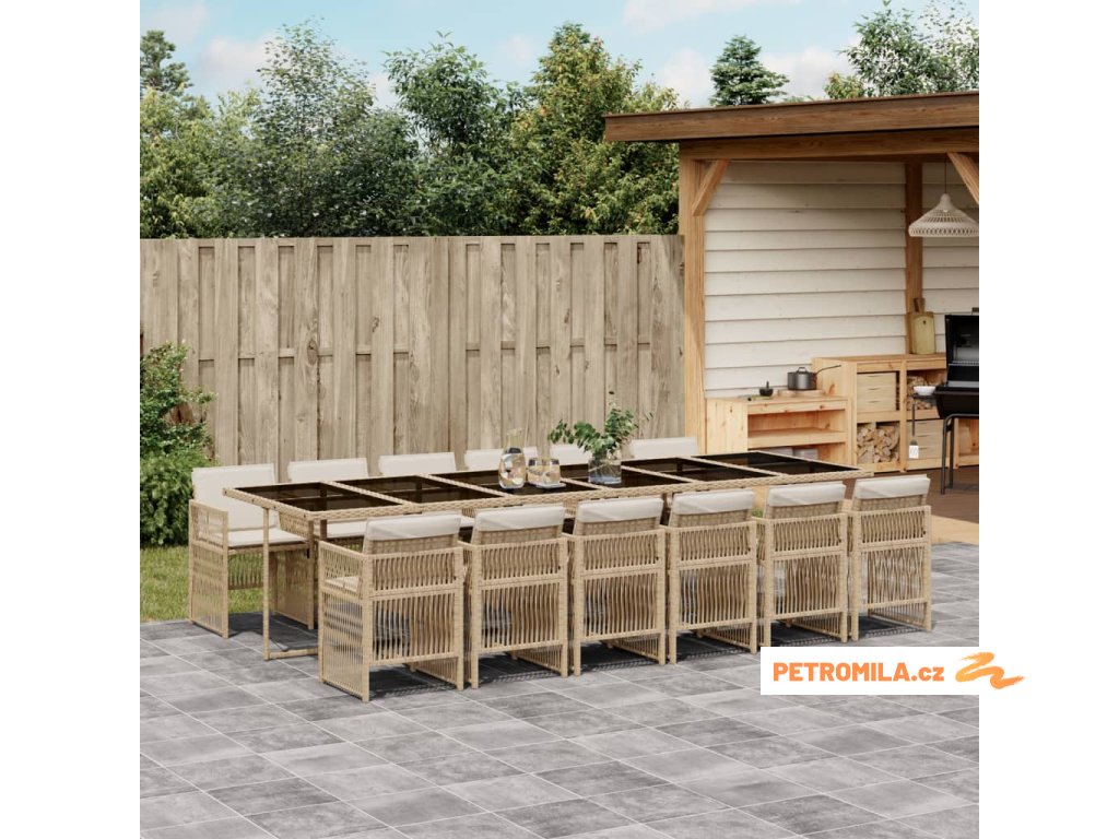 13dílný zahradní jídelní set s poduškami béžový polyratan