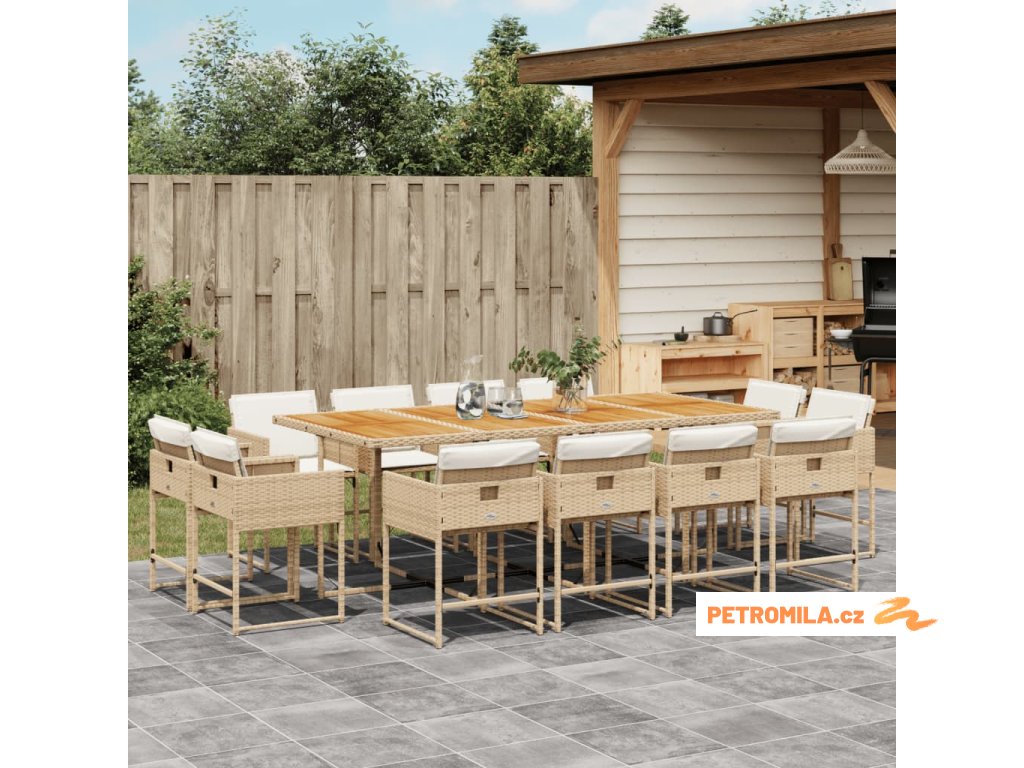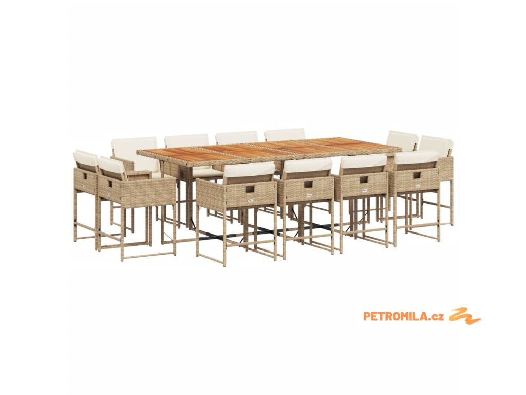 13dílný zahradní jídelní set s poduškami béžový polyratan