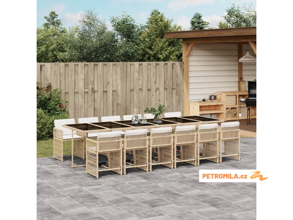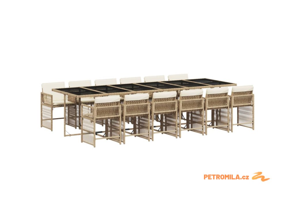 13dílný zahradní jídelní set s poduškami béžový polyratan