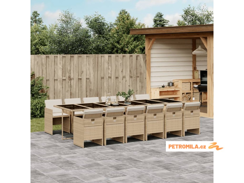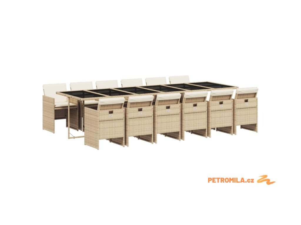 13dílný zahradní jídelní set s poduškami béžový polyratan