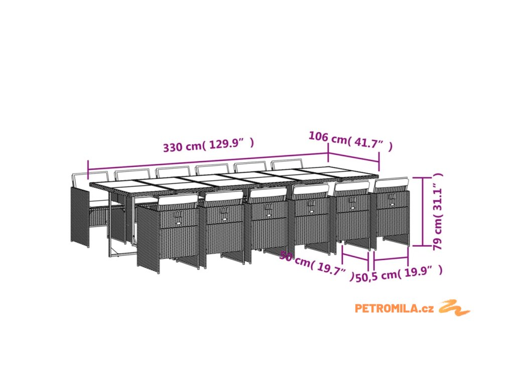 - Rozměry: 330 x 106 x 73 cm (D x Š x V)