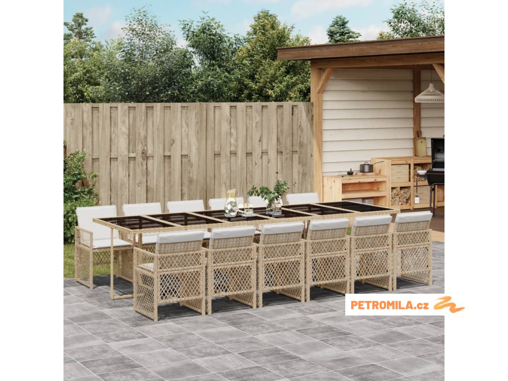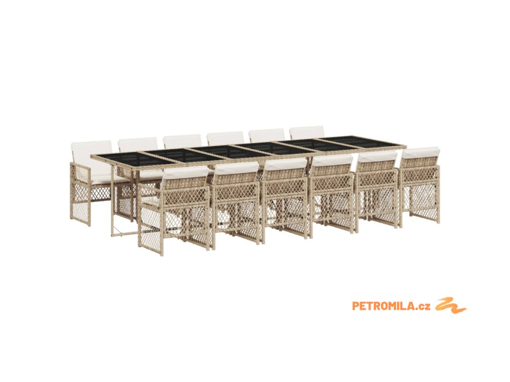 13dílný zahradní jídelní set s poduškami béžový polyratan