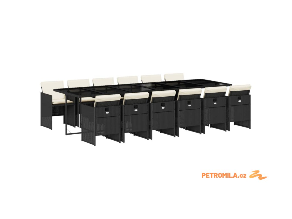 13dílný zahradní jídelní set s poduškami černý polyratan