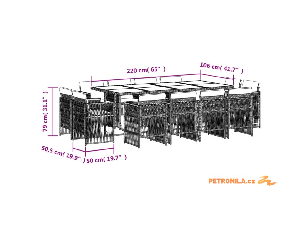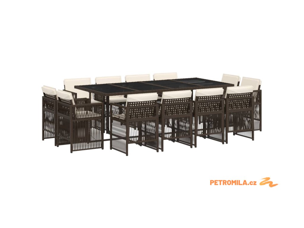13dílný zahradní jídelní set s poduškami hnědý polyratan