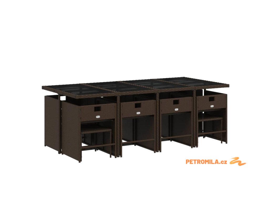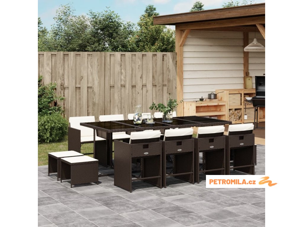 13dílný zahradní jídelní set s poduškami hnědý polyratan