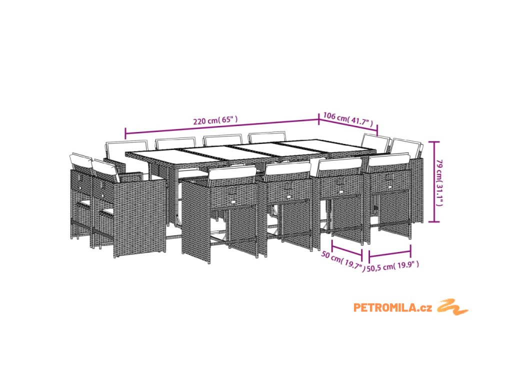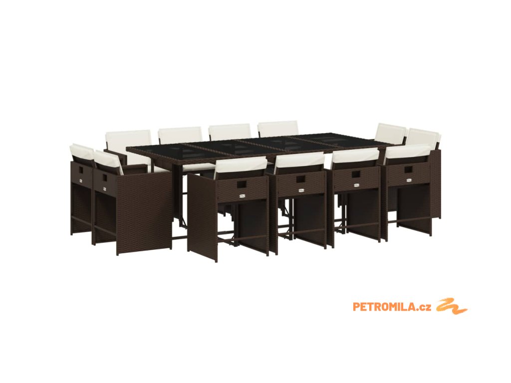 13dílný zahradní jídelní set s poduškami hnědý polyratan