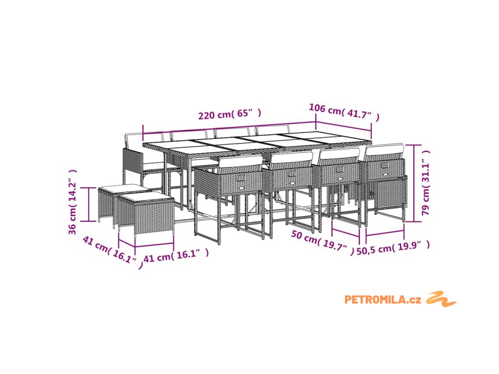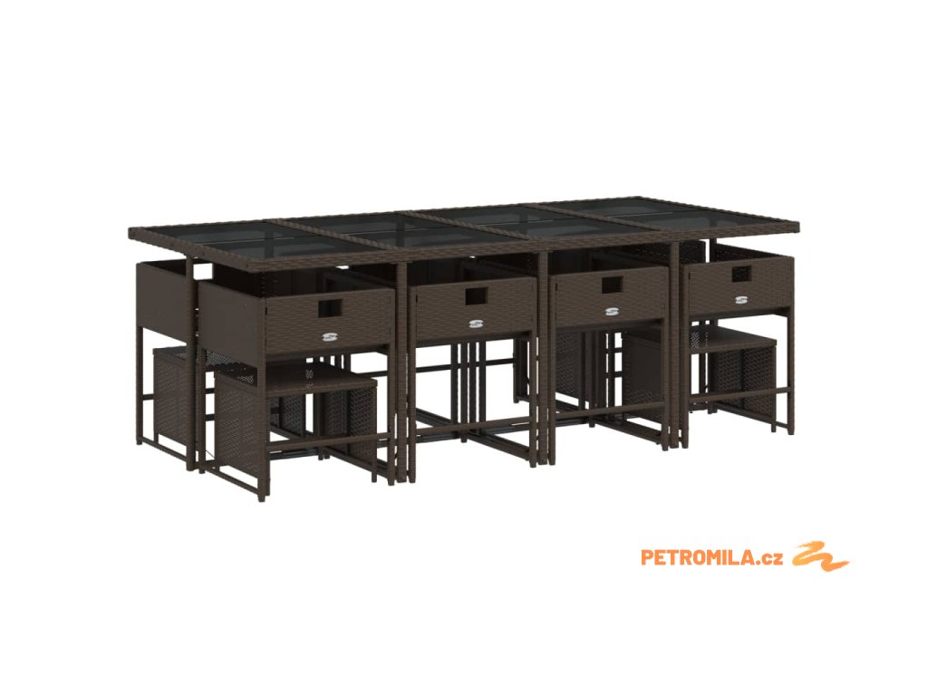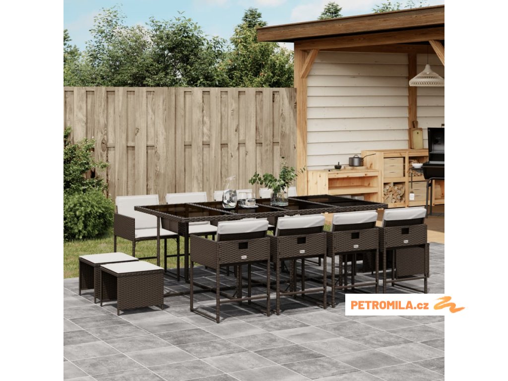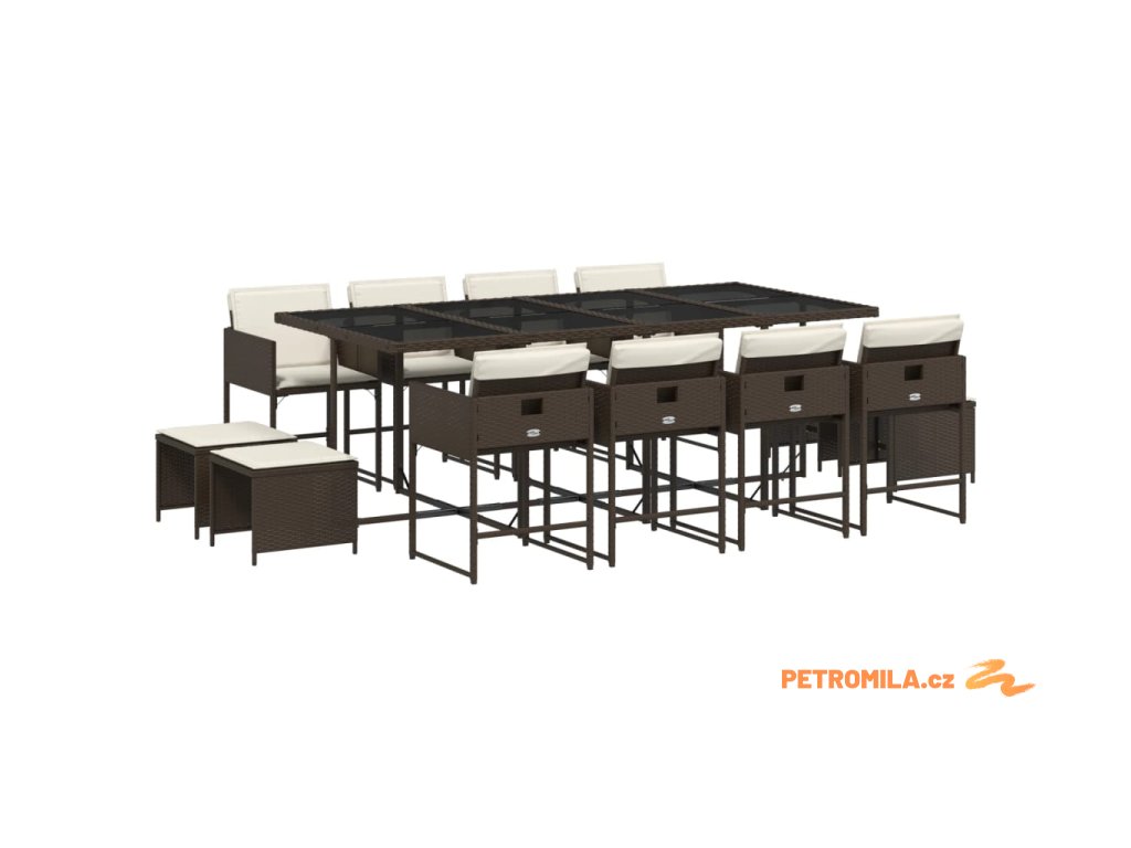 13dílný zahradní jídelní set s poduškami hnědý polyratan