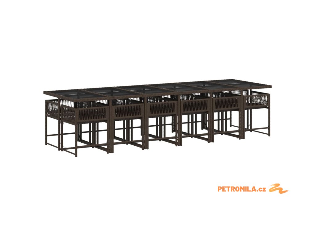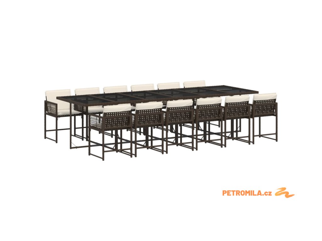 13dílný zahradní jídelní set s poduškami hnědý polyratan