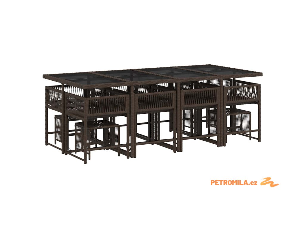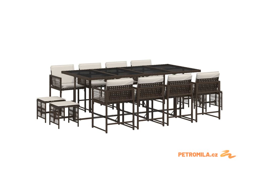 13dílný zahradní jídelní set s poduškami hnědý polyratan