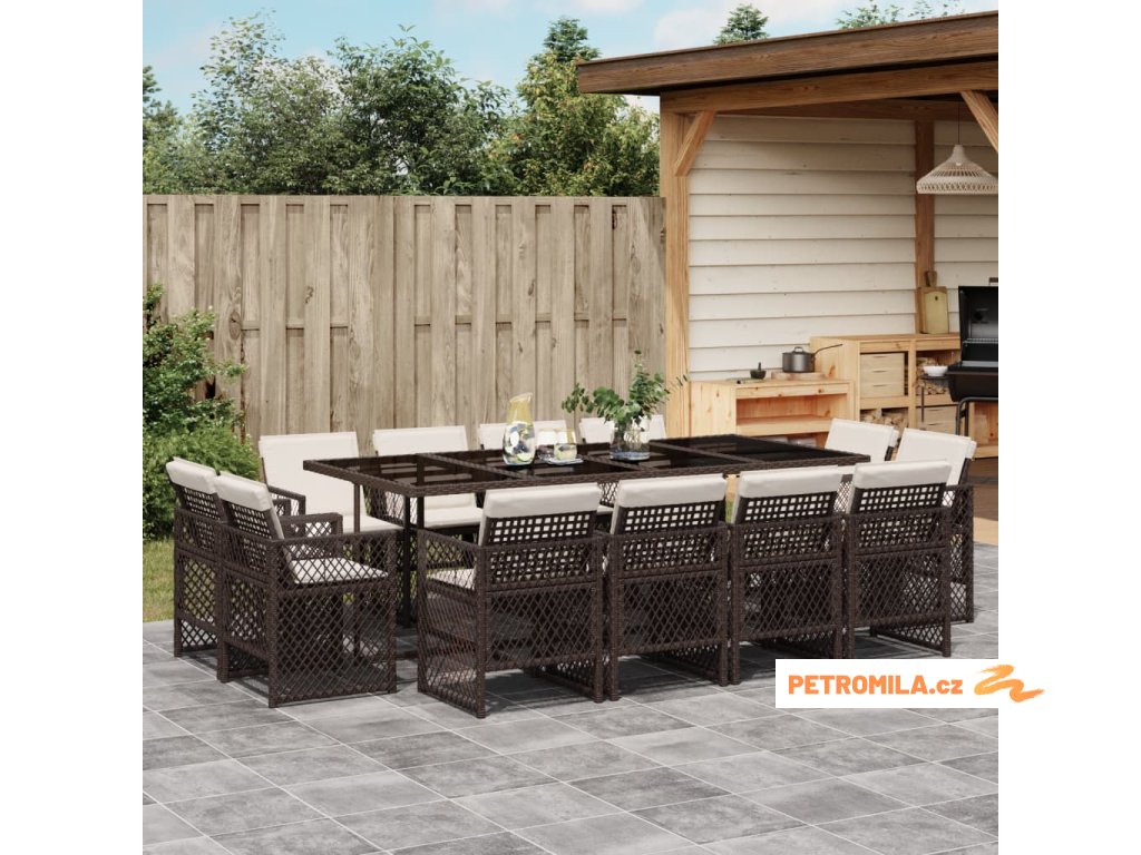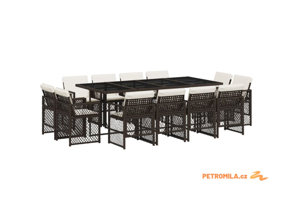 13dílný zahradní jídelní set s poduškami hnědý polyratan