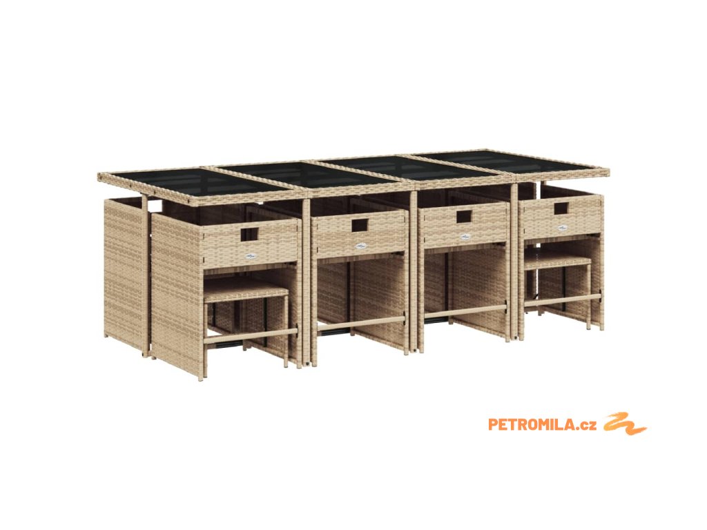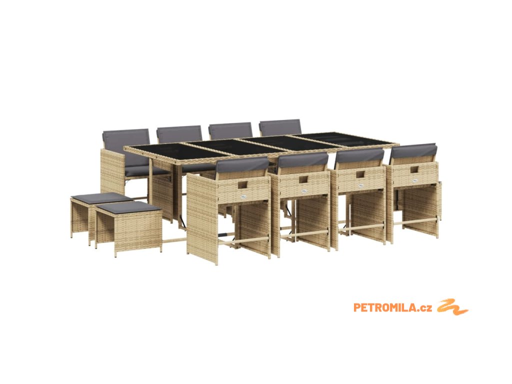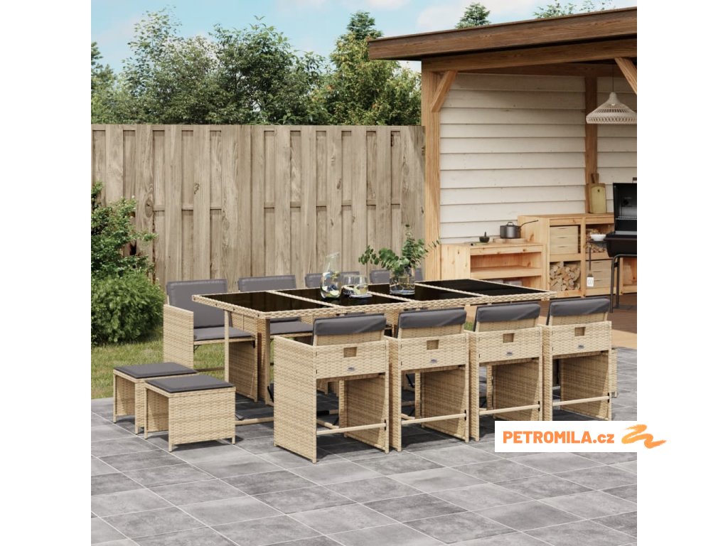 13dílný zahradní jídelní set s poduškami mix béžové polyratan