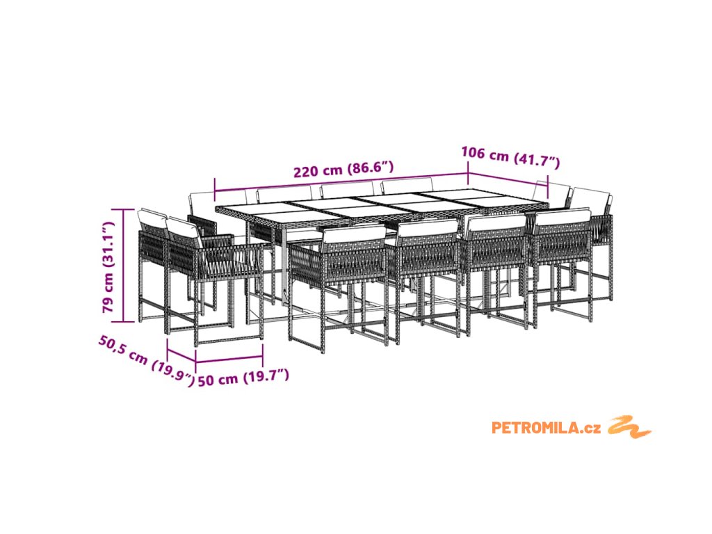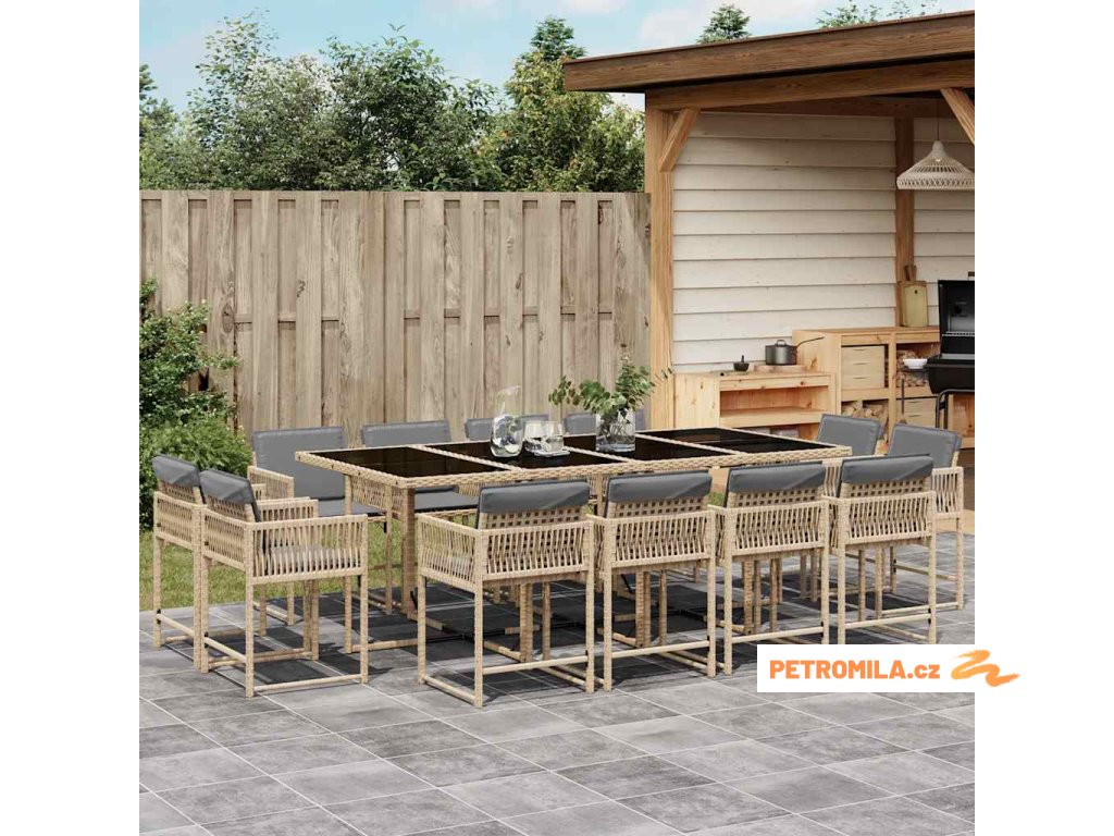 13dílný zahradní jídelní set s poduškami mix béžové polyratan