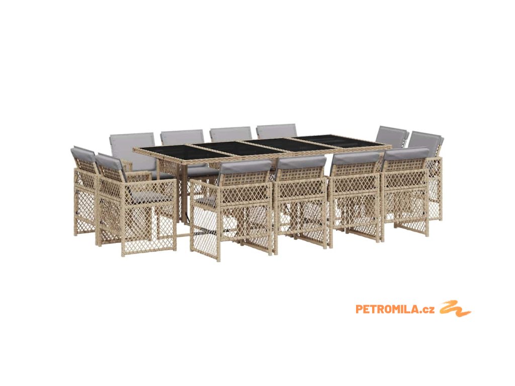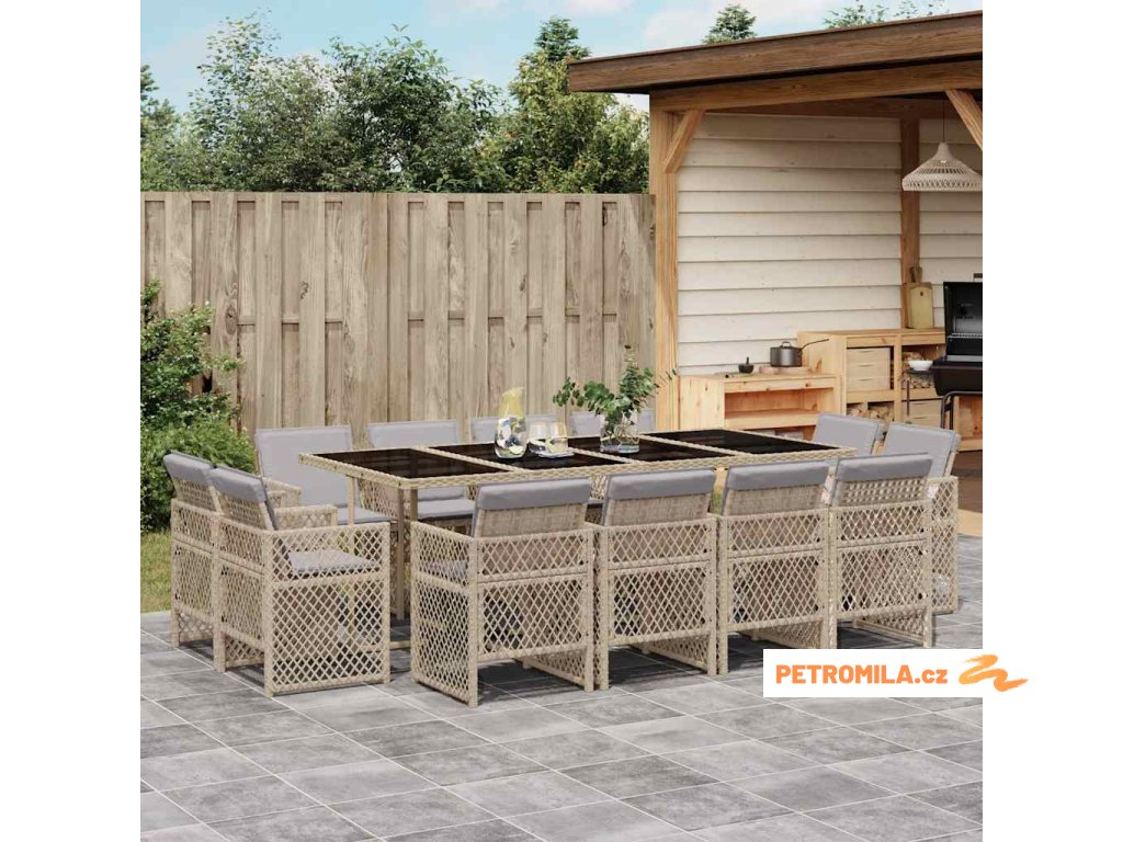 13dílný zahradní jídelní set s poduškami mix béžové polyratan