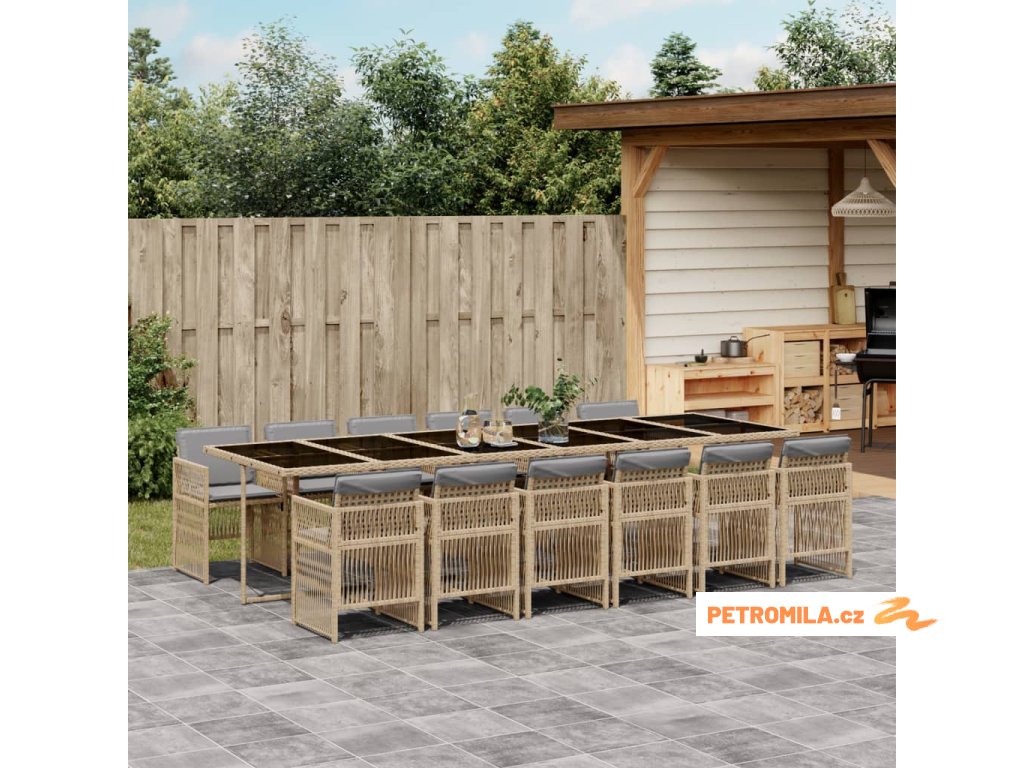 13dílný zahradní jídelní set s poduškami mix béžové polyratan