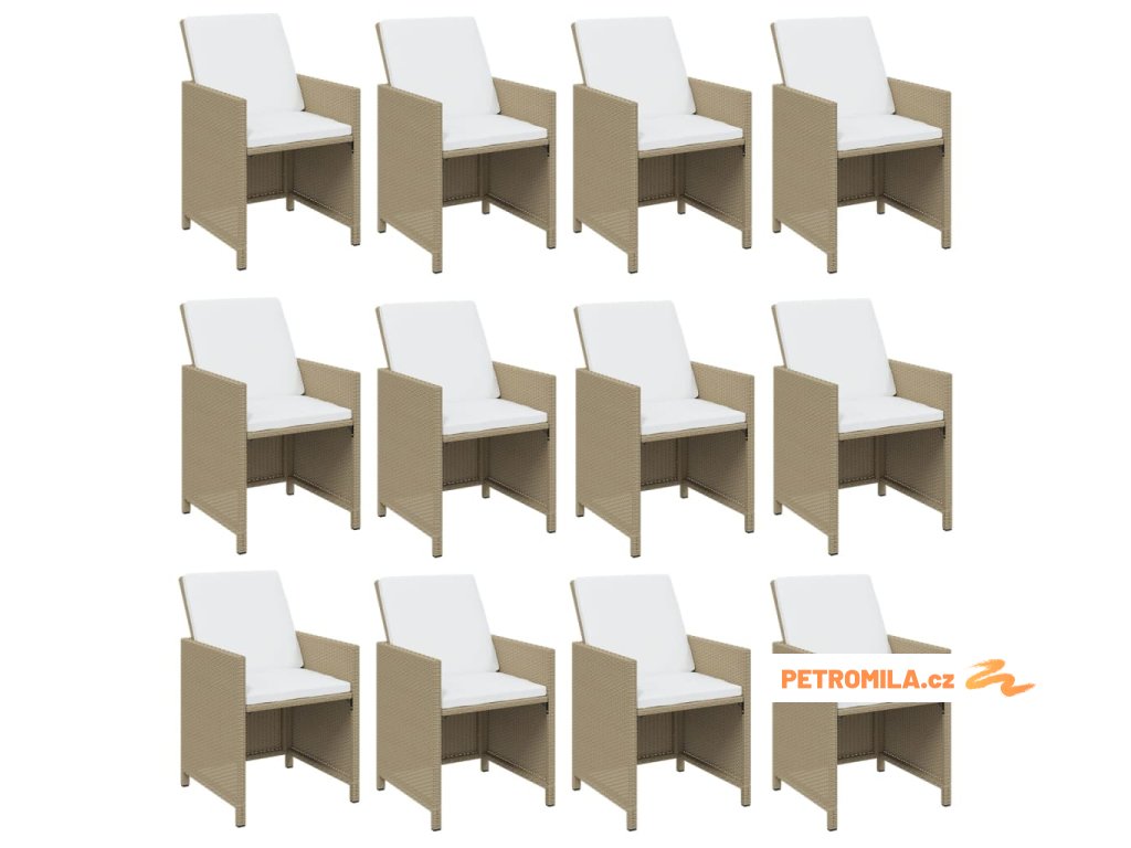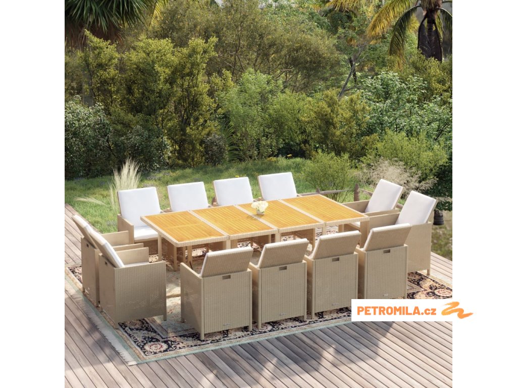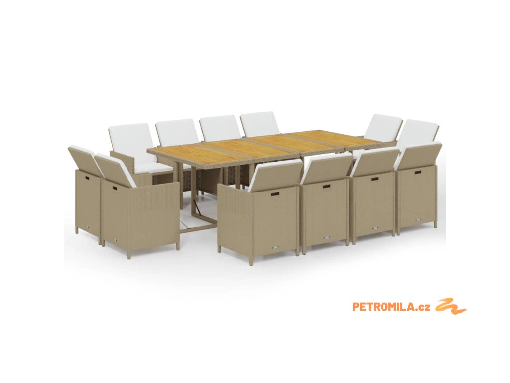 13dílný zahradní jídelní set s poduškami polyratan béžový