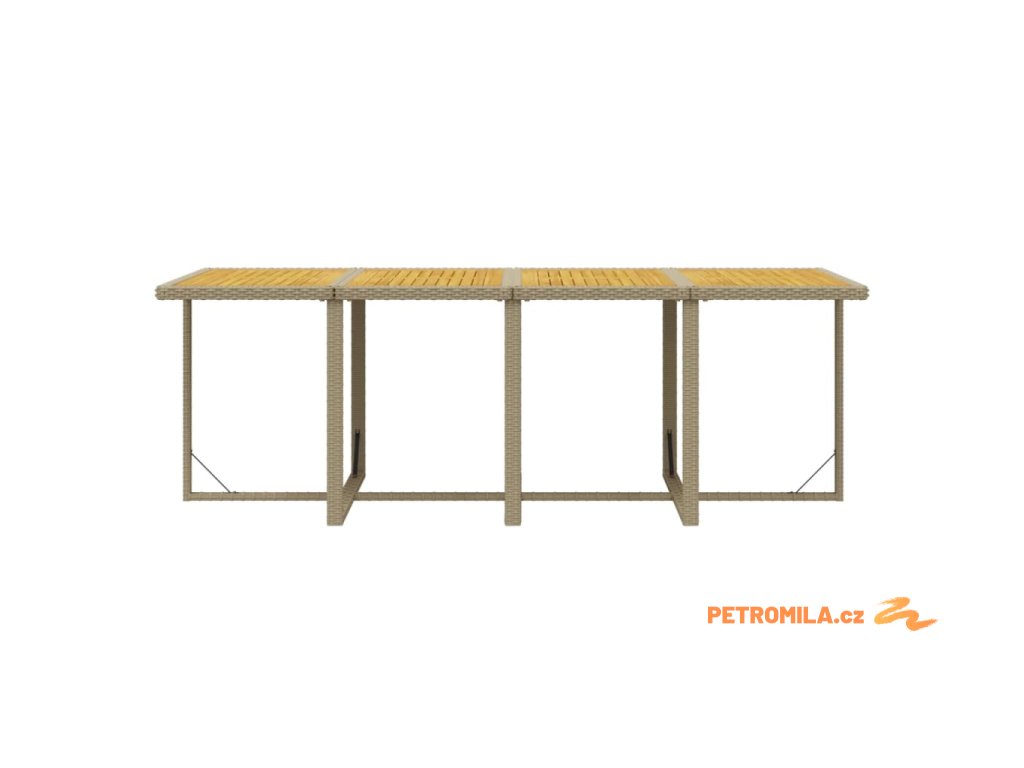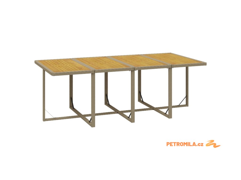 - Materiál: PE ratan, práškově lakovaná ocel, masivní akáciové dřevo s přírodní olejovou povrchovou úpravou