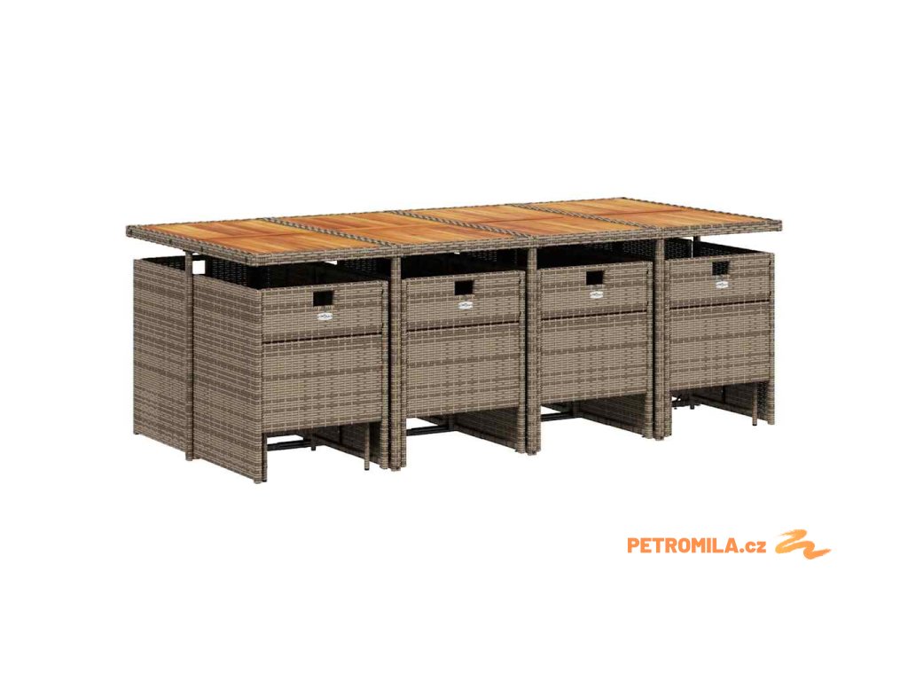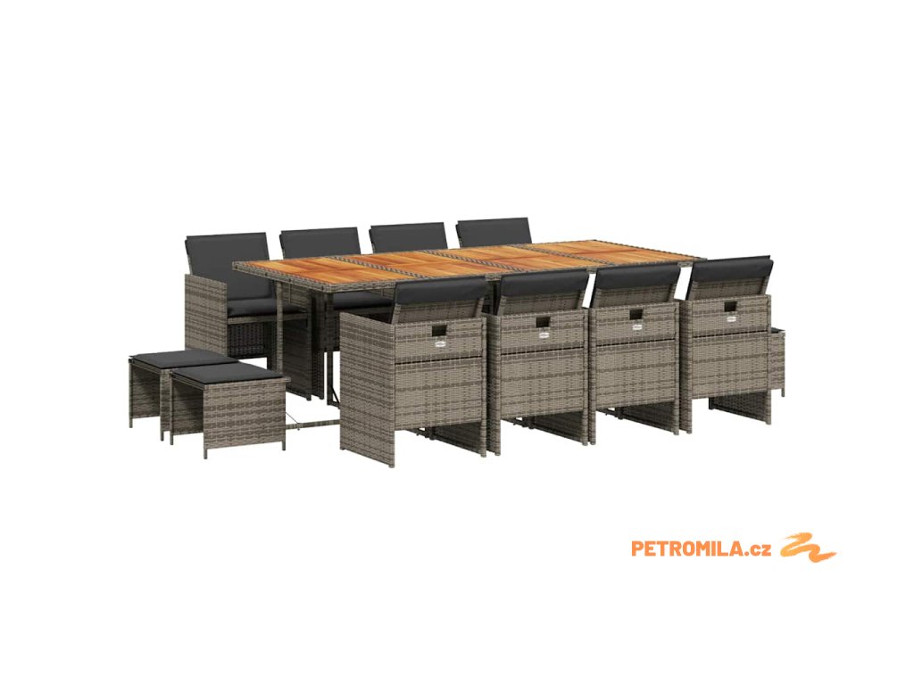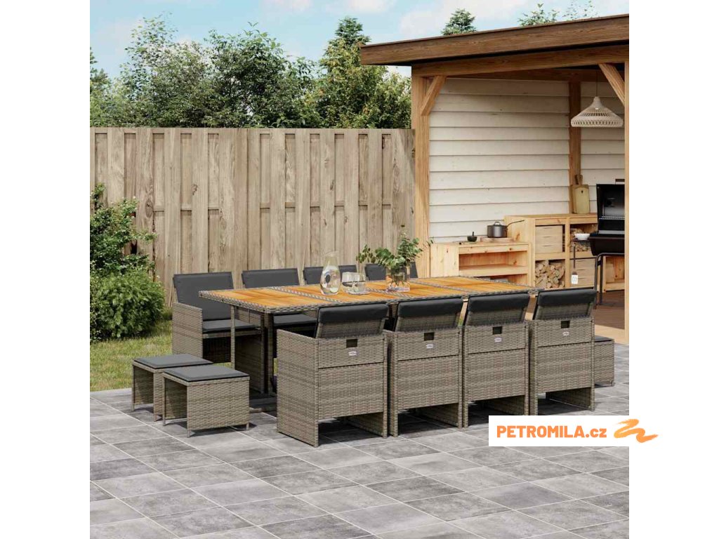 13dílný zahradní jídelní set s poduškami šedý polyratan