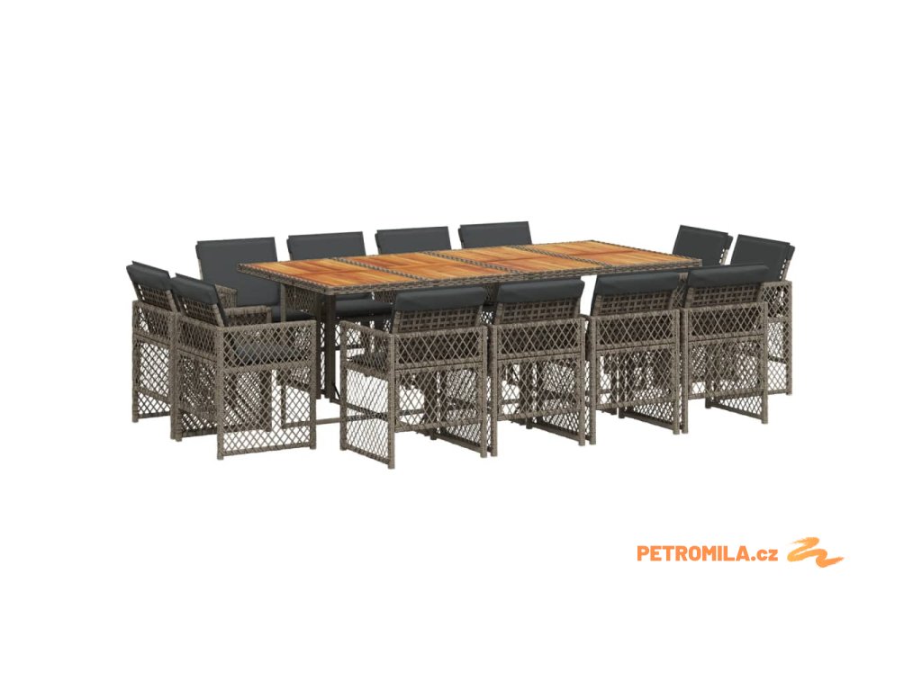 13dílný zahradní jídelní set s poduškami šedý polyratan