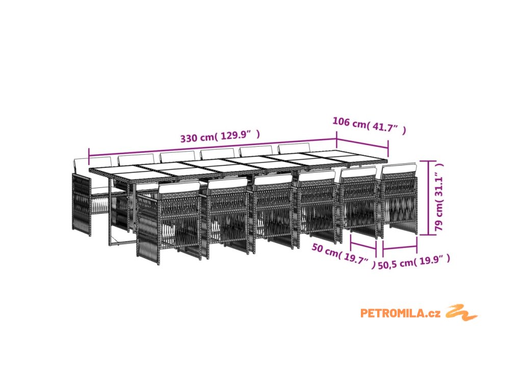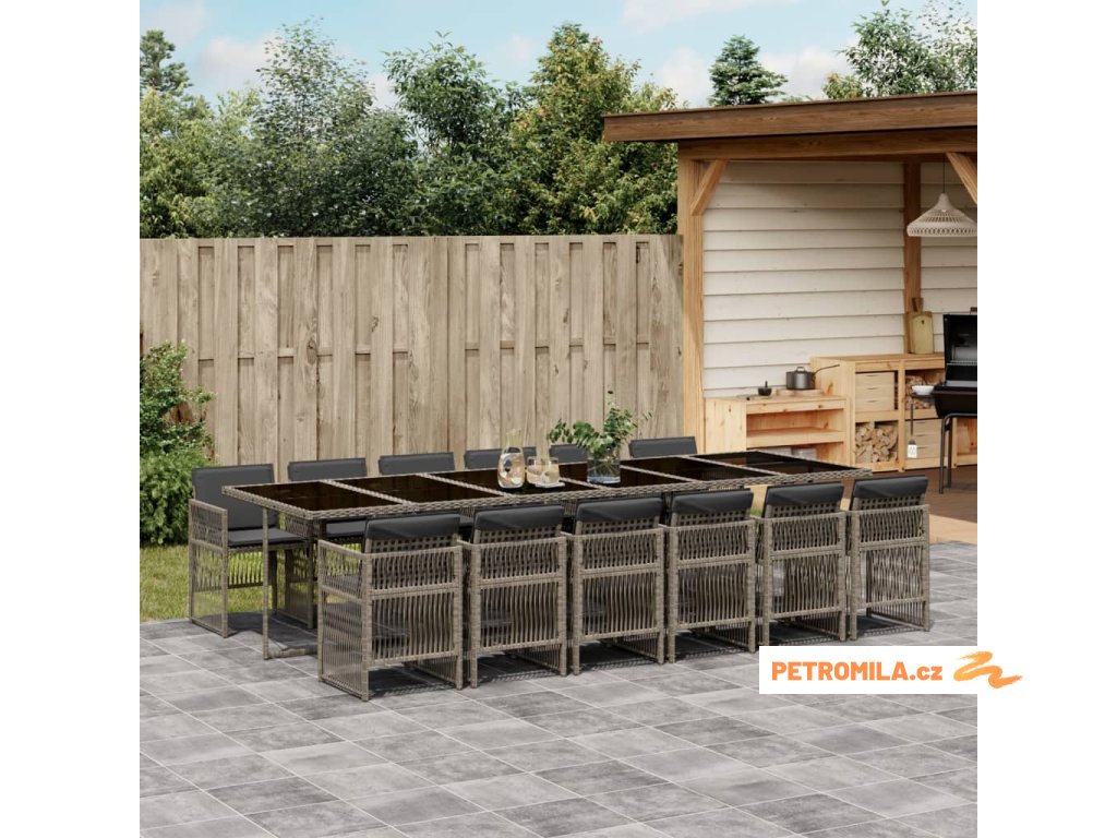 13dílný zahradní jídelní set s poduškami šedý polyratan