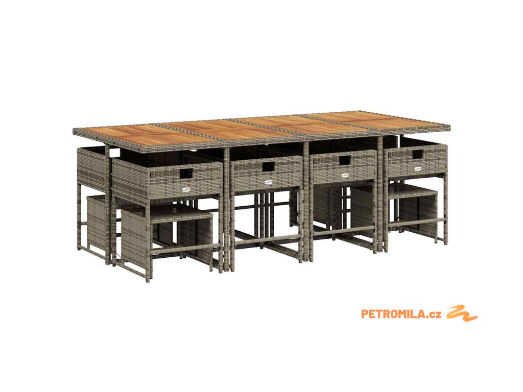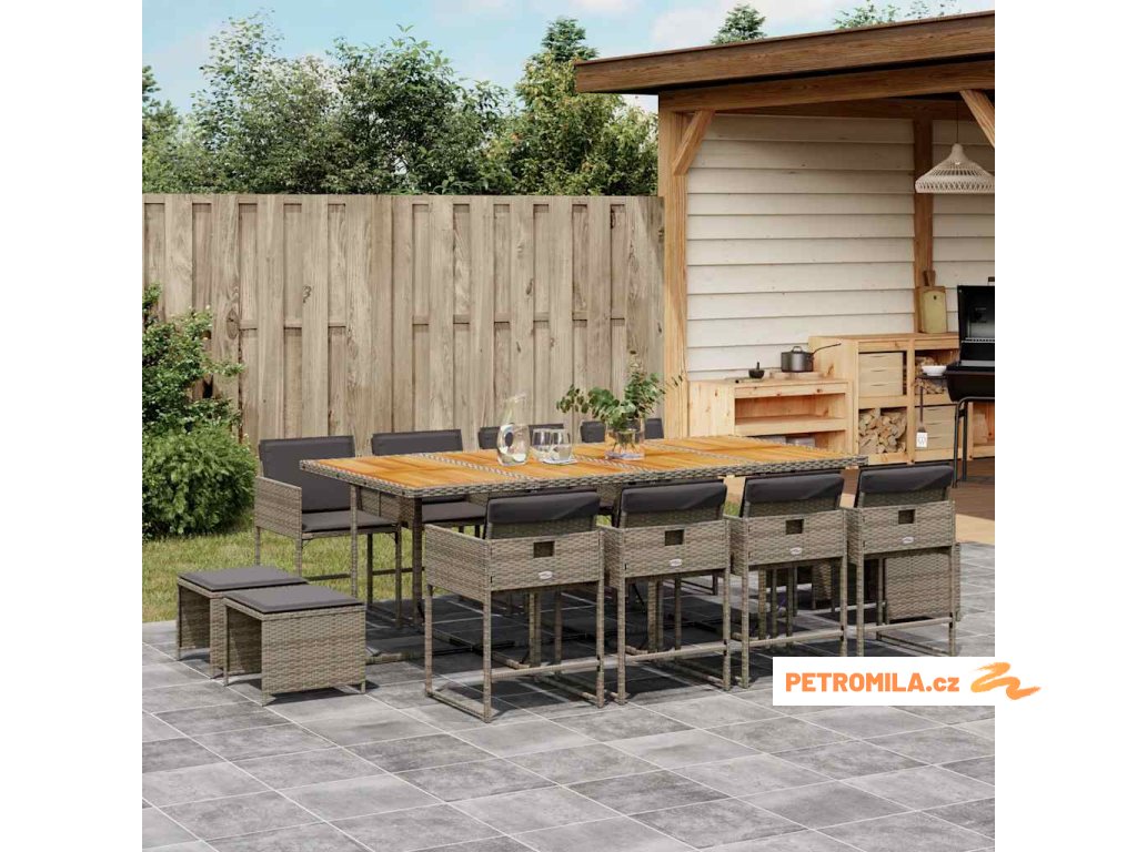 13dílný zahradní jídelní set s poduškami šedý polyratan