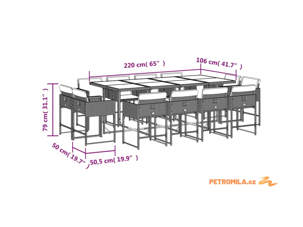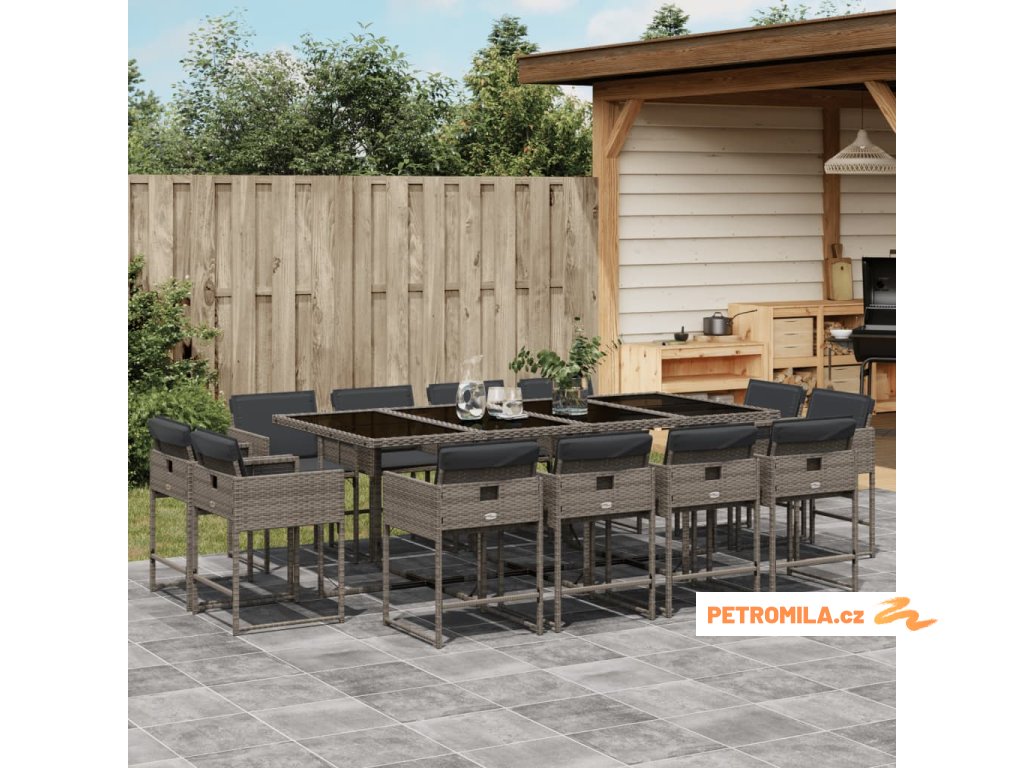 13dílný zahradní jídelní set s poduškami šedý polyratan