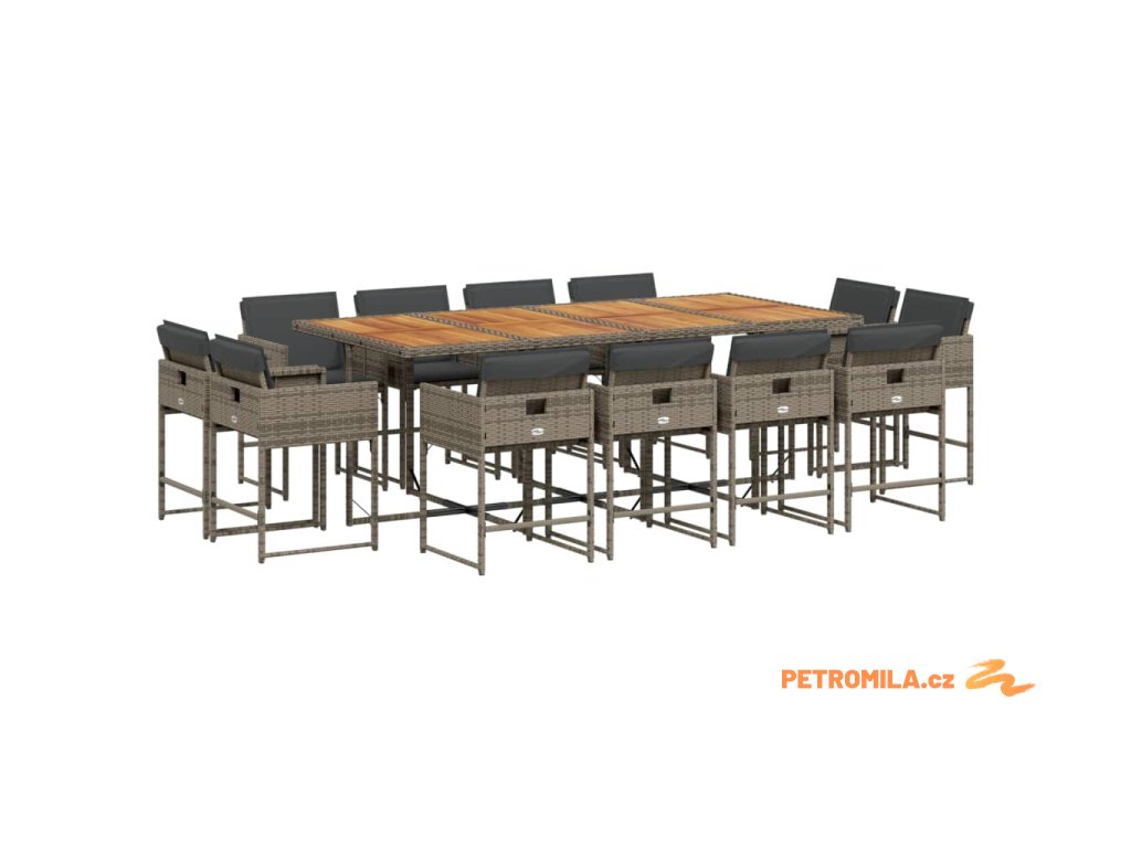 13dílný zahradní jídelní set s poduškami šedý polyratan