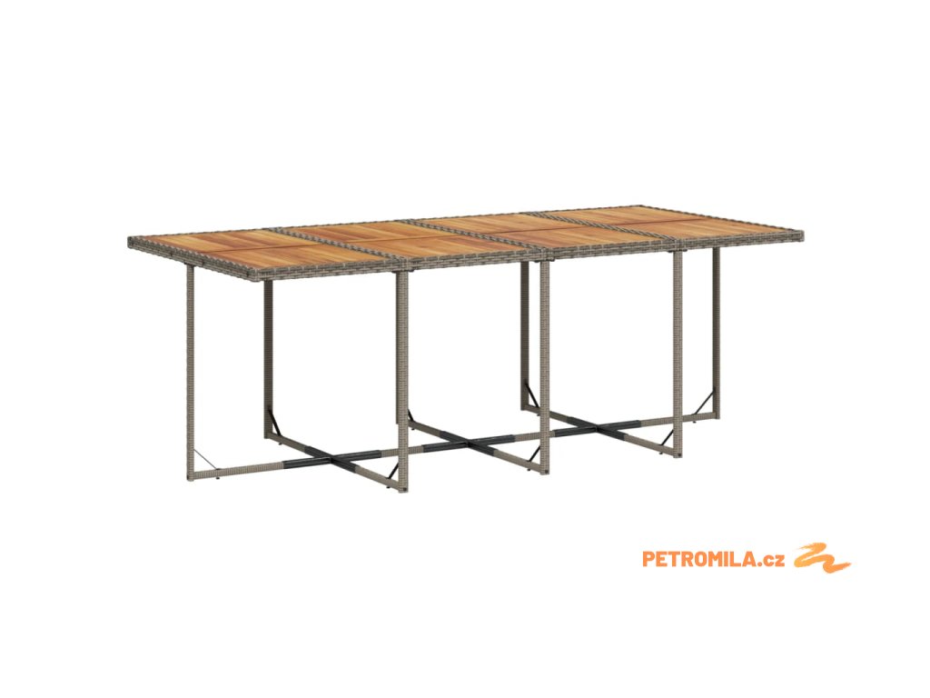 - Materiál: PE ratan, práškově lakovaná ocel, masivní akáciové dřevo s olejovou povrchovou úpravou