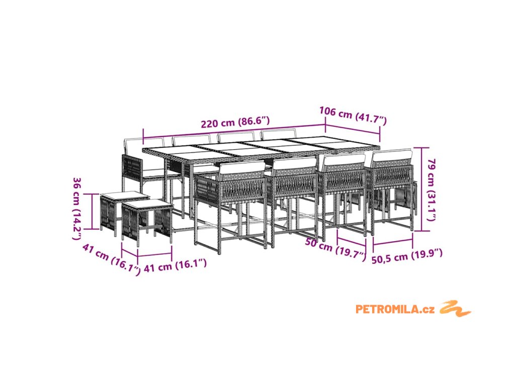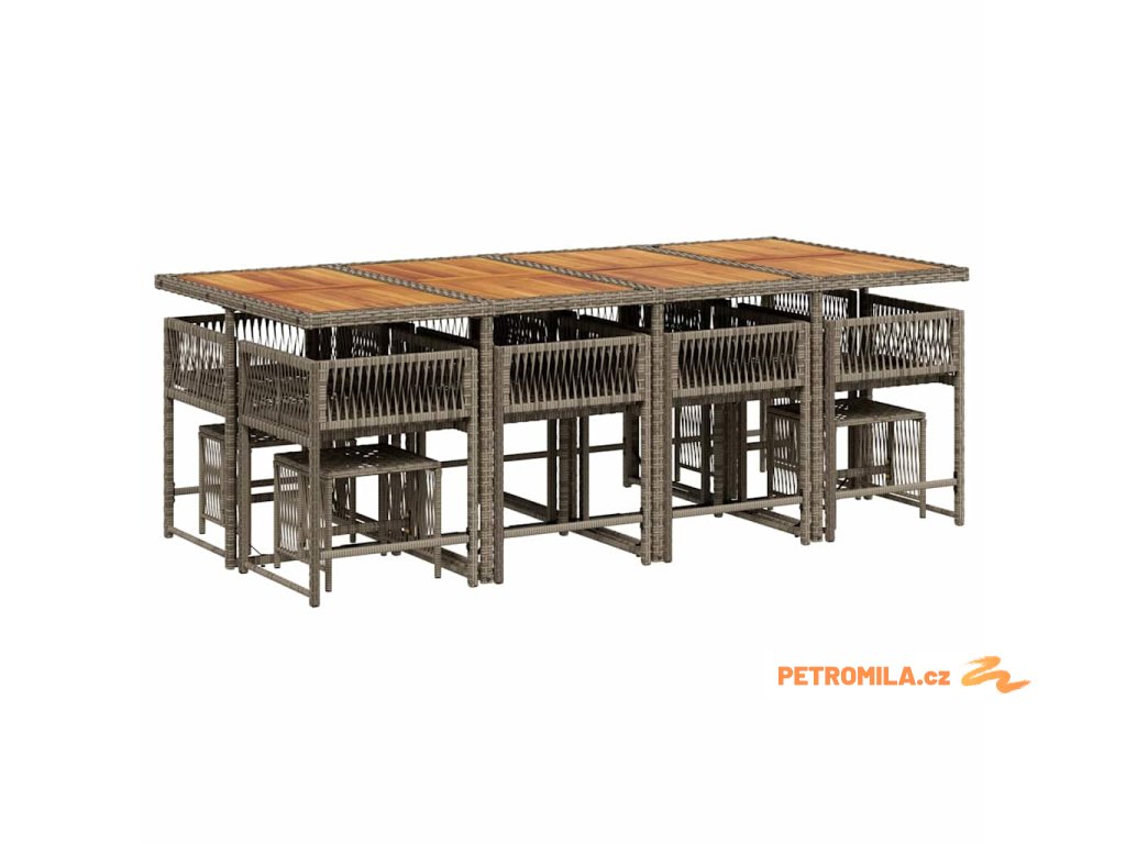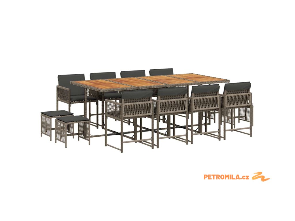 13dílný zahradní jídelní set s poduškami šedý polyratan