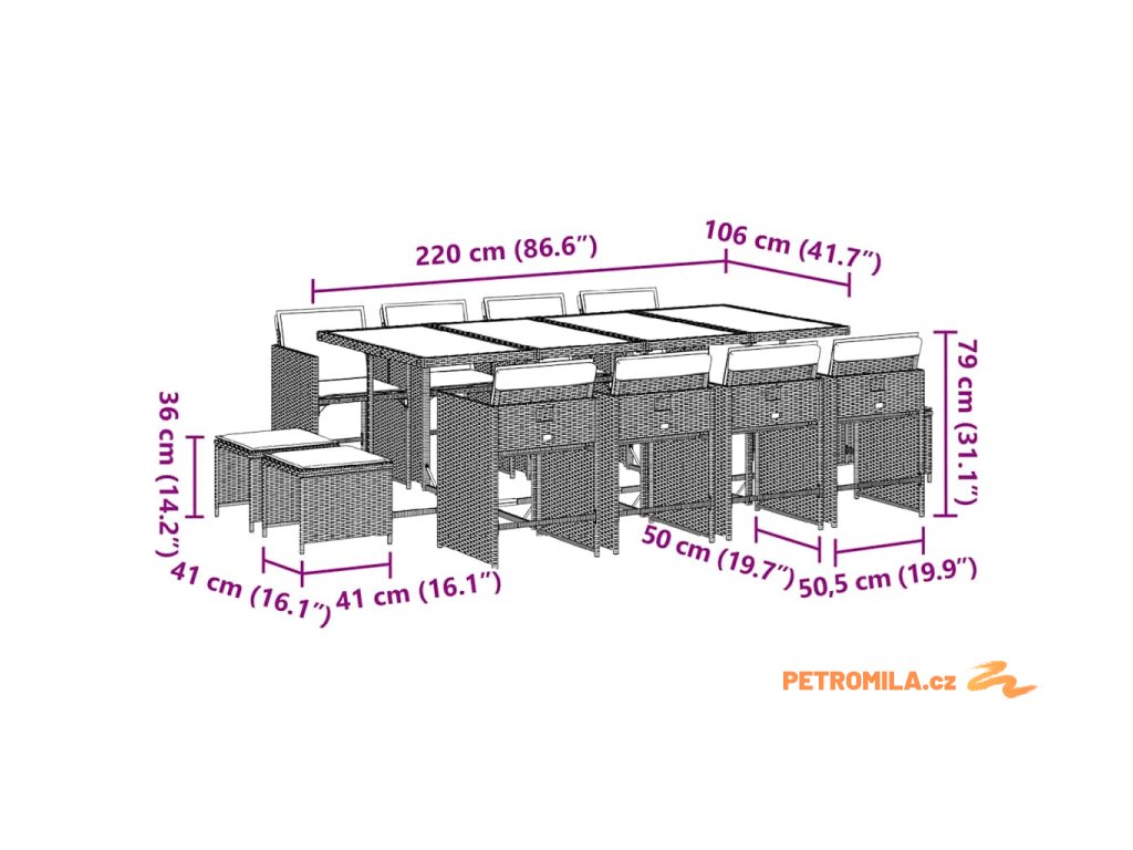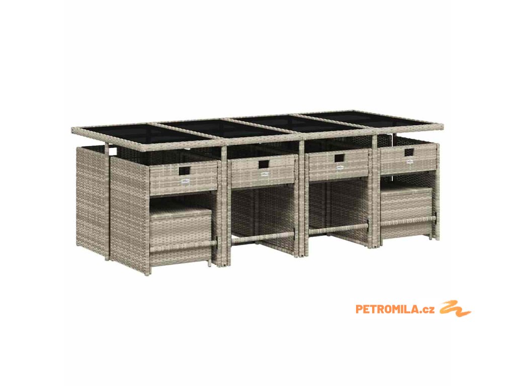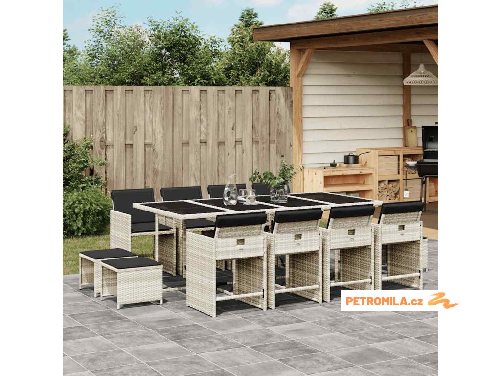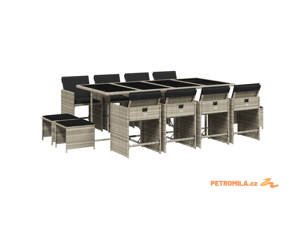 13dílný zahradní jídelní set s poduškami světle šedý polyratan