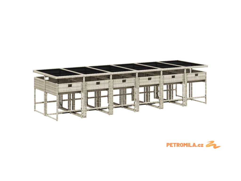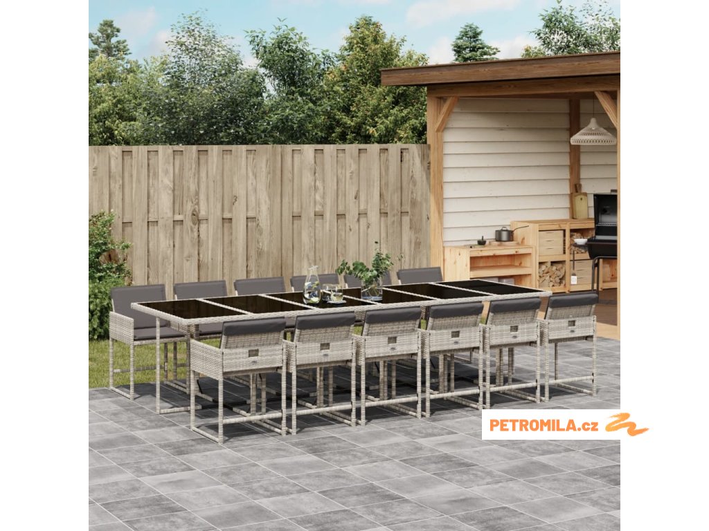 13dílný zahradní jídelní set s poduškami světle šedý polyratan