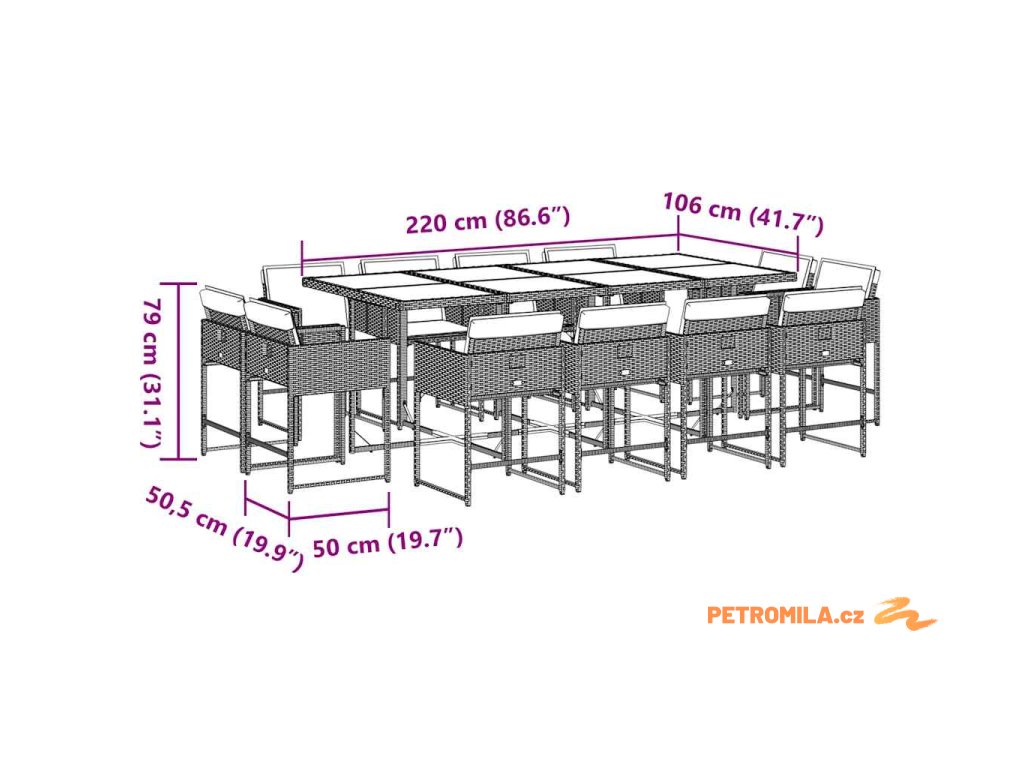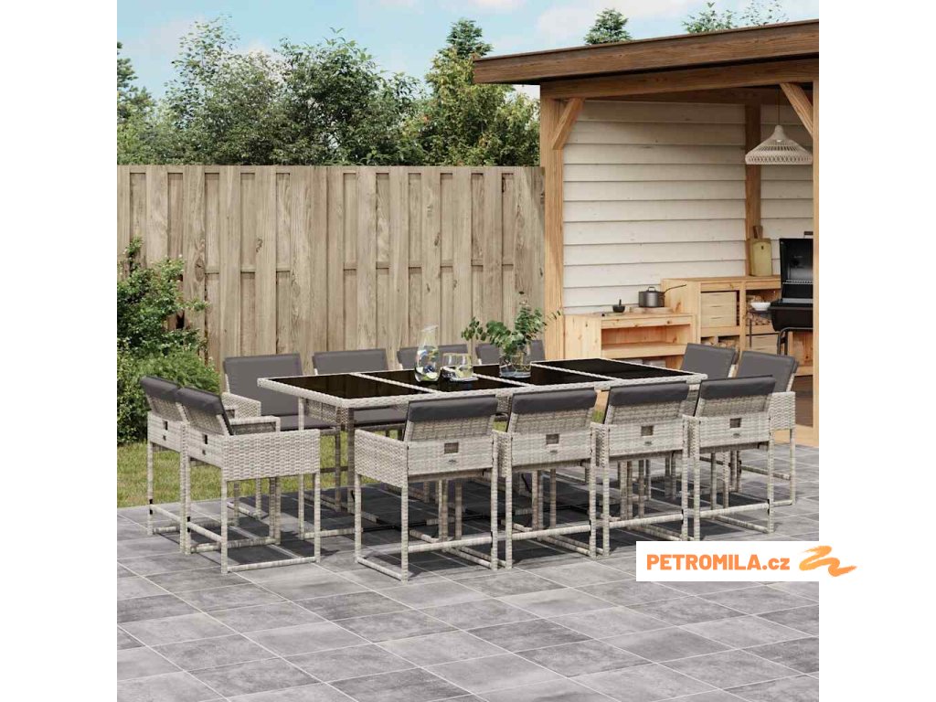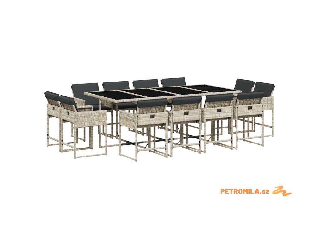 13dílný zahradní jídelní set s poduškami světle šedý polyratan