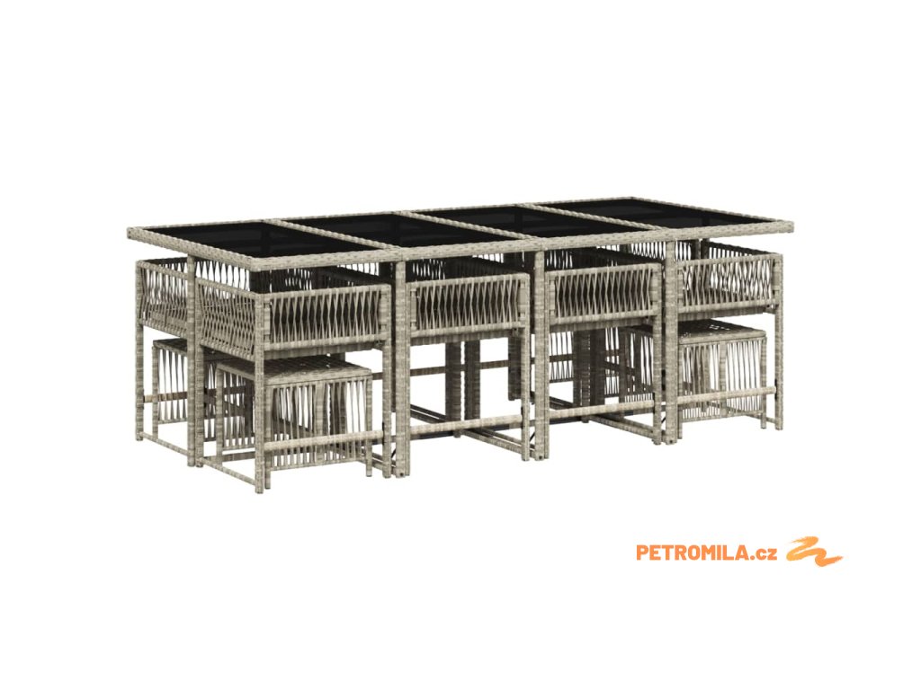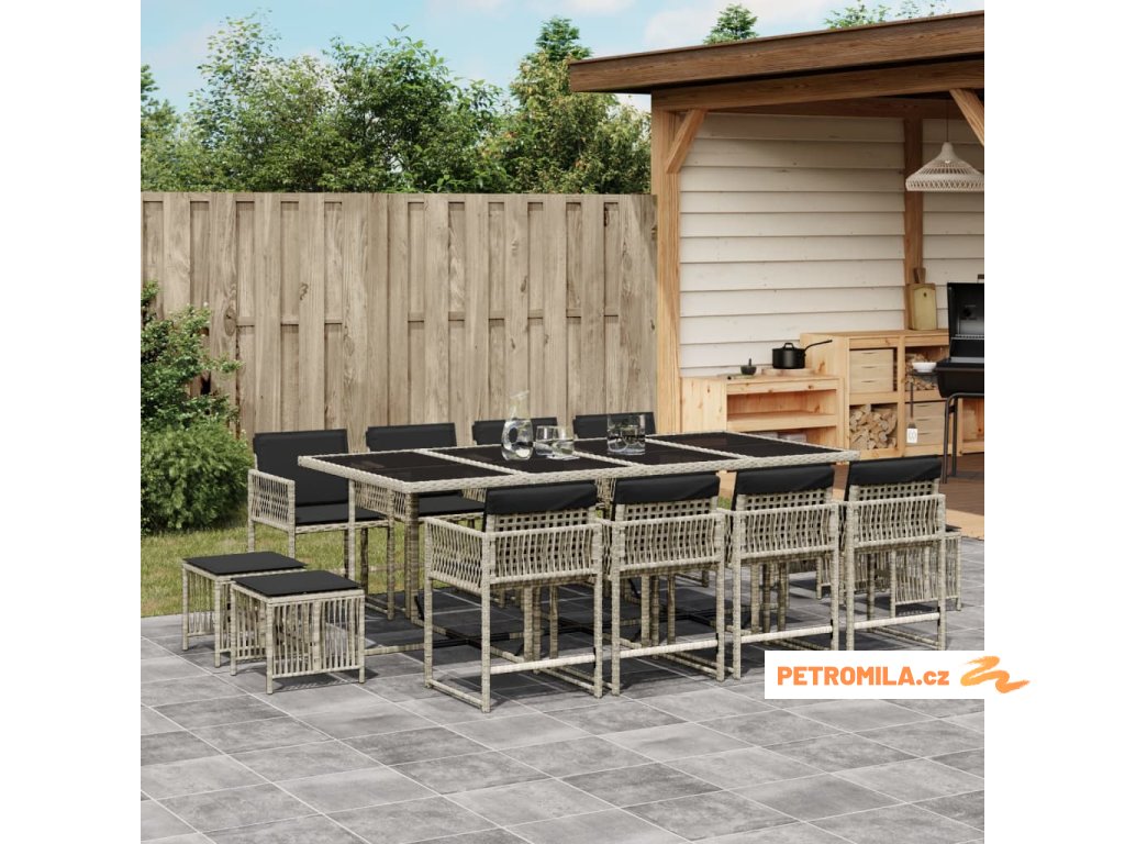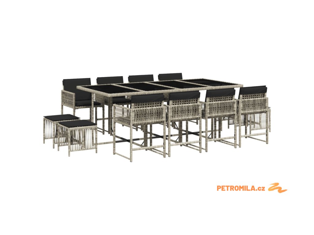 13dílný zahradní jídelní set s poduškami světle šedý polyratan